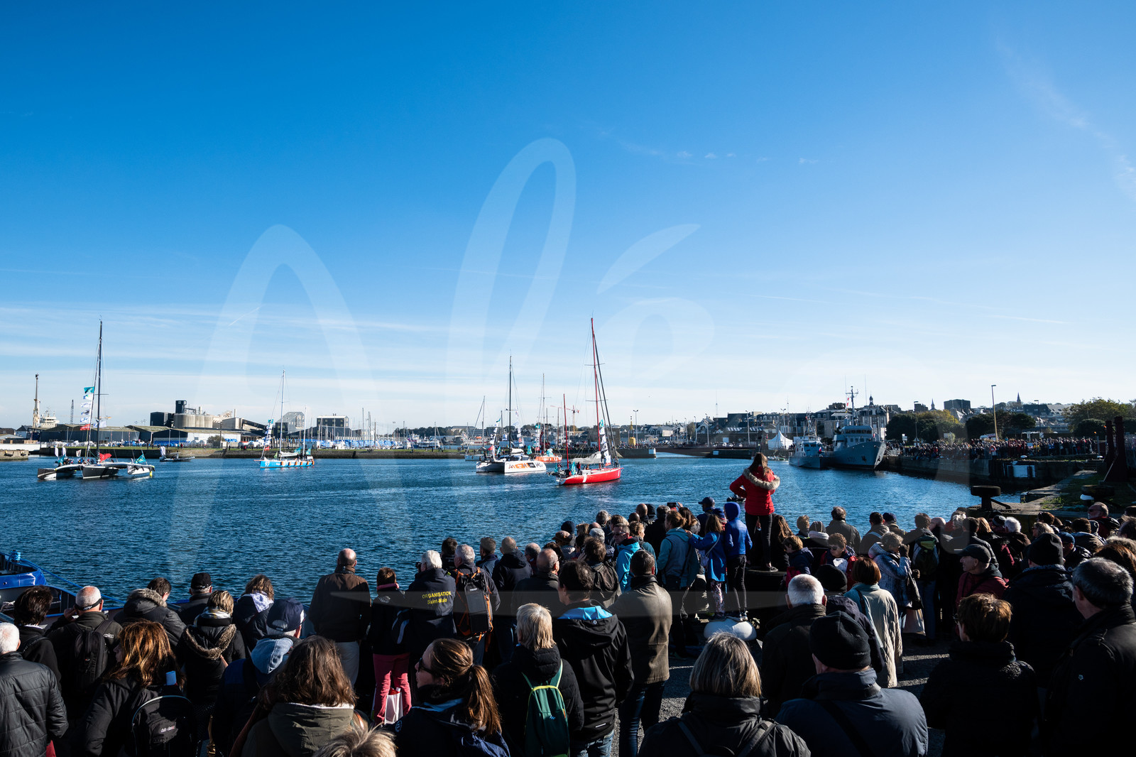 | Description | Ambiance public watching boats leaving pontoon during the pre-start of the Route du Rhum 2018, on November 3rd, 2018 in St-Malo, north Brittany, France - Photo Jean-Louis Carli / Alea |