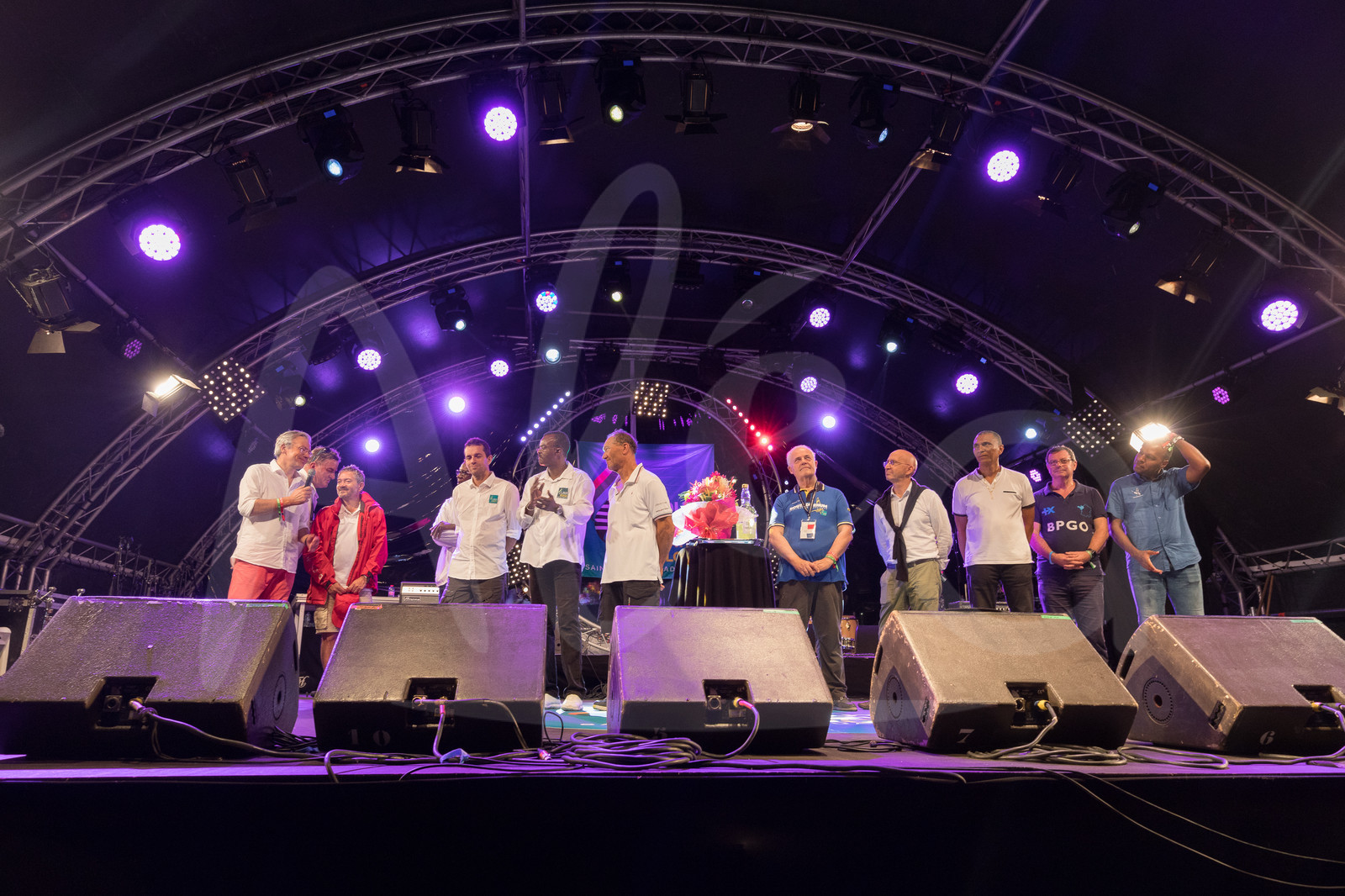 | Description | Celebration on podium for winner maxi trimaran IDEC Sport, skipper Francis Joyon - new record in 7d 14h 21mn 47sec, during arrival of the Route du Rhum 2018, on November 11th, 2018 in Pointe-a-Pitre, Guadeloupe, France - Photo Jean-Marie Liot / Alea |