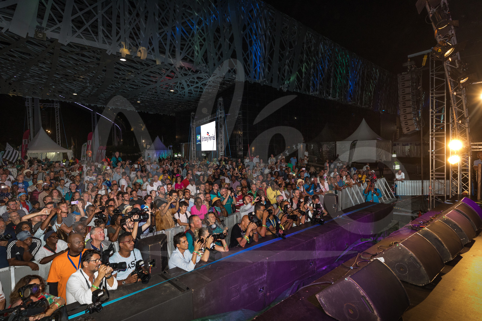 | Description | Celebration on podium for winner maxi trimaran IDEC Sport, skipper Francis Joyon - new record in 7d 14h 21mn 47sec, during arrival of the Route du Rhum 2018, on November 11th, 2018 in Pointe-a-Pitre, Guadeloupe, France - Photo Jean-Marie Liot / Alea |