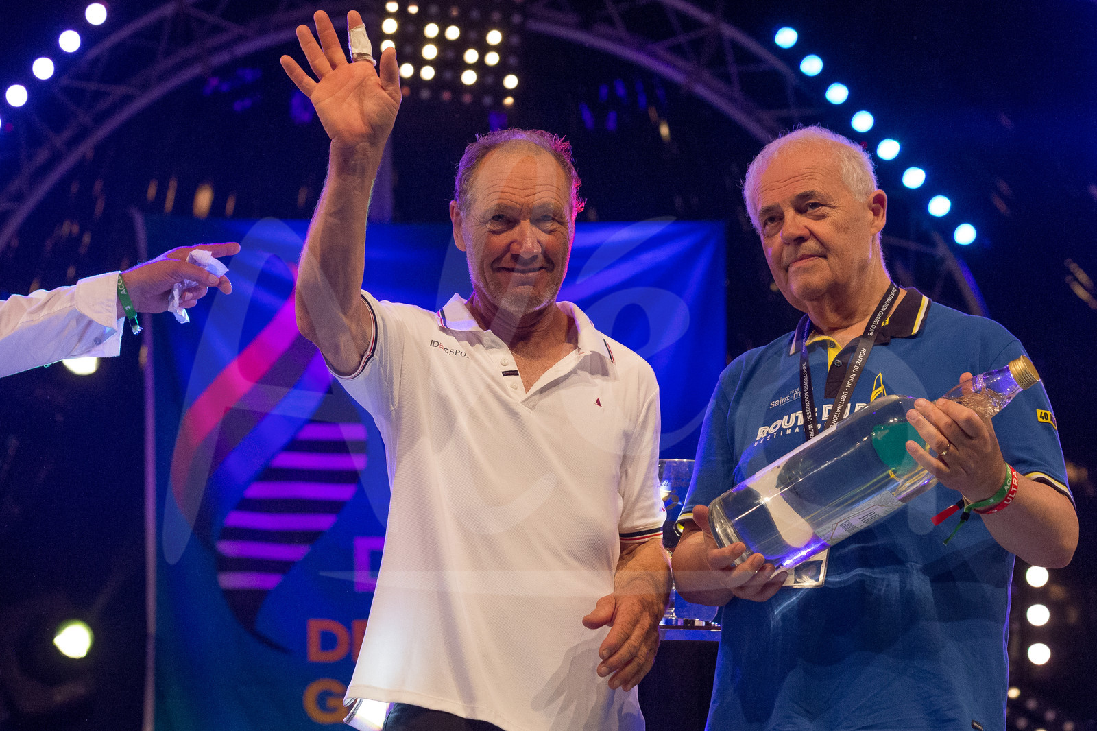 | Description | Celebration on podium for winner maxi trimaran IDEC Sport, skipper Francis Joyon - new record in 7d 14h 21mn 47sec, during arrival of the Route du Rhum 2018, on November 11th, 2018 in Pointe-a-Pitre, Guadeloupe, France - Photo Jean-Marie Liot / Alea |