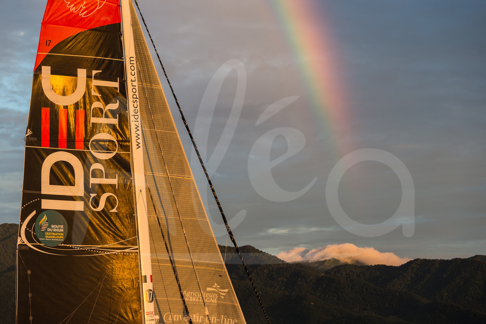 | Description | First images before finish for maxi trimaran IDEC Sport, skipper Francis Joyon, under a rainbow during arrival of the Route du Rhum 2018, on November 11th, 2018 in Pointe-a-Pitre, Guadeloupe, France - Photo Jean-Marie Liot / Alea |