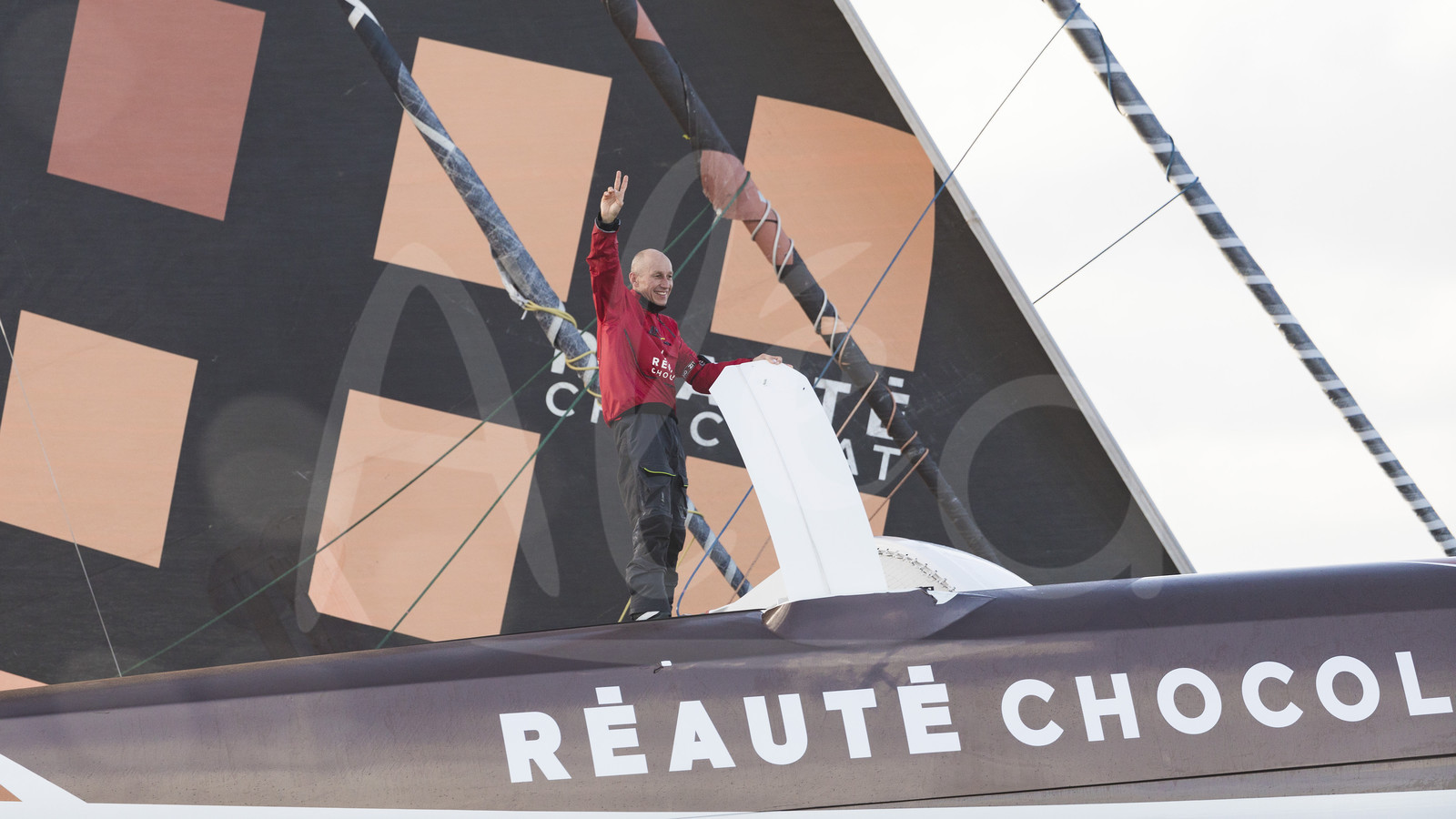 | Description | Category multi 50, celebration on the finish line for winner Reaute Chocolat, skipper Armel Tripon, third overall, during arrival of the Route du Rhum 2018, on November 15th, 2018 in Pointe-a-Pitre, Guadeloupe, France - Photo Jean-Marie Liot / Alea. |