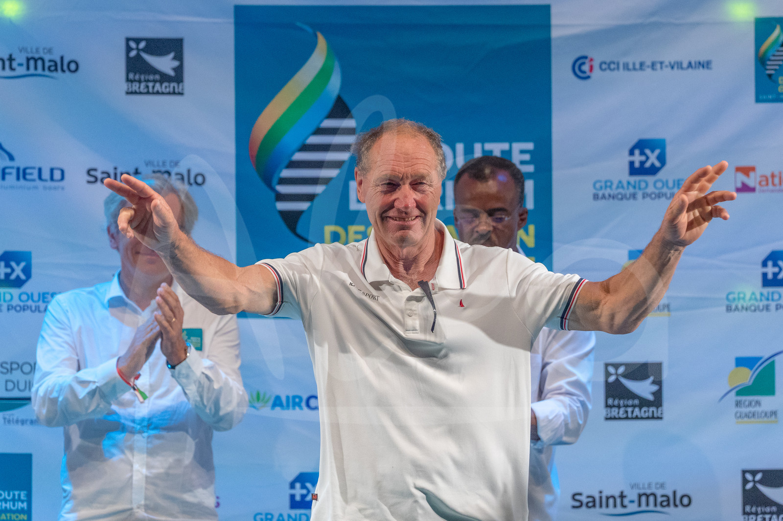 | Description | Prize ceremony for Ultime, winner Francis Joyon, skipper IDEC Sport, after arrival of the Route du Rhum 2018, on November 17th, 2018 in Pointe-a-Pitre, Guadeloupe, France - Photo Jean-Marie Liot / Alea |