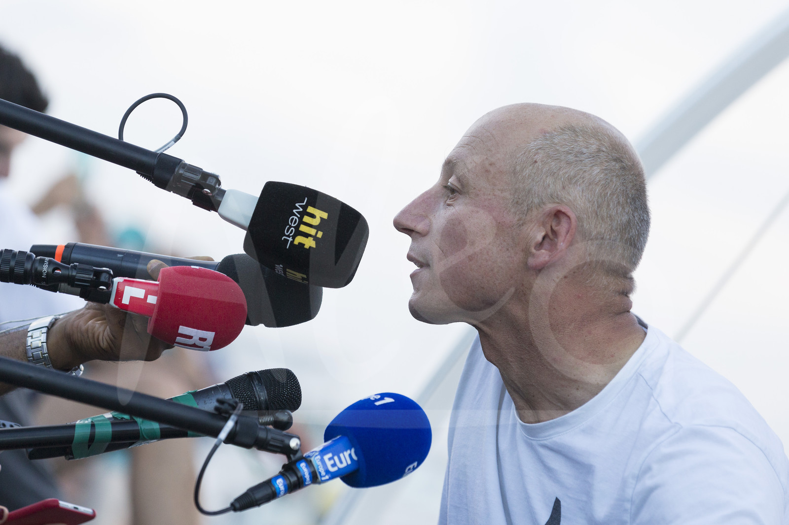 | Description | Category multi 50, media for winner Reaute Chocolat, skipper Armel Tripon, third overall, during arrival of the Route du Rhum 2018, on November 15th, 2018 in Pointe-a-Pitre, Guadeloupe, France - Photo Jean-Marie Liot / Alea. |