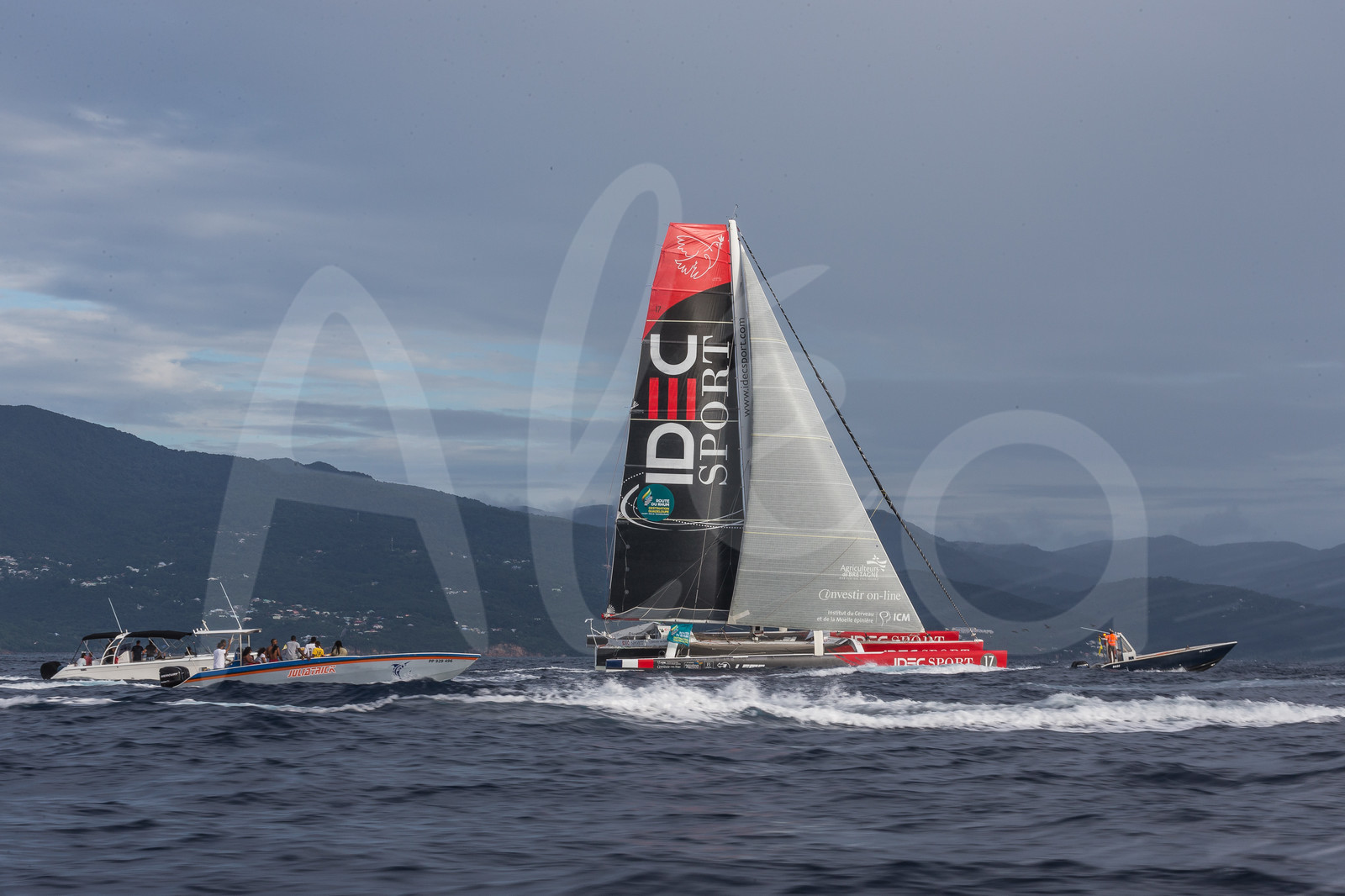 | Description | Last images before finish for maxi trimaran IDEC Sport, skipper Francis Joyon, during arrival of the Route du Rhum 2018, on November 11th, 2018 in Pointe-a-Pitre, Guadeloupe, France - Photo Jean-Marie Liot / Alea |