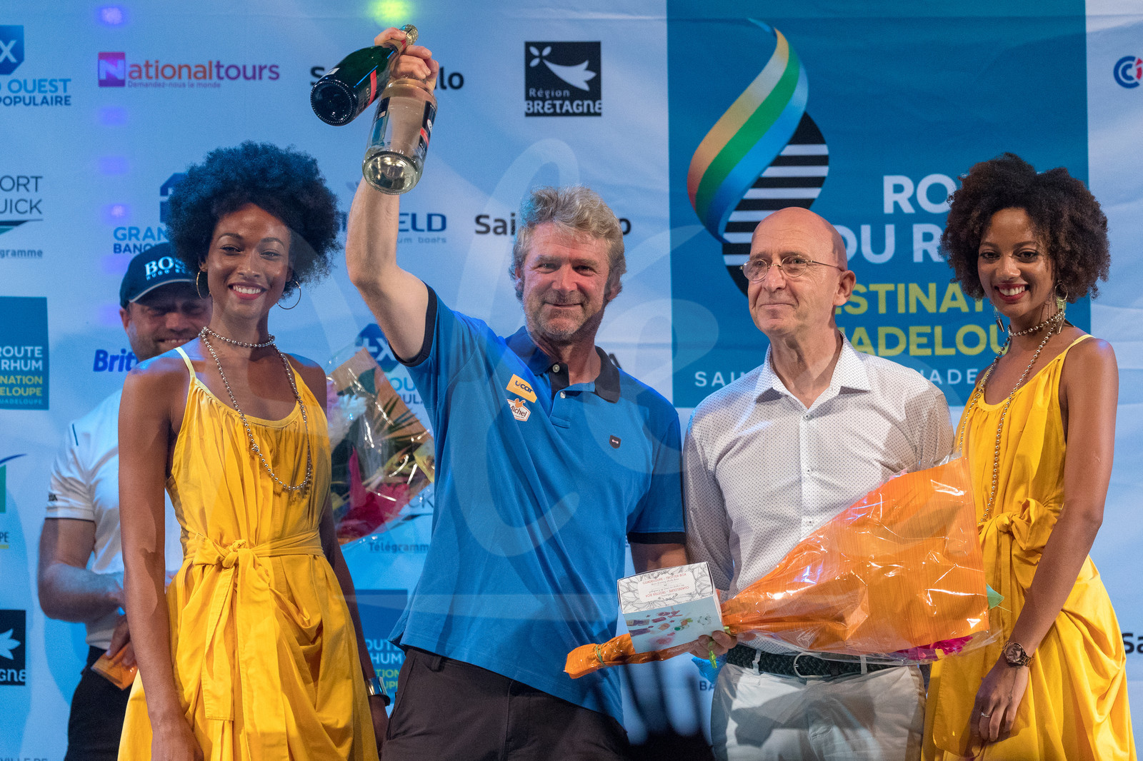 | Description | Prize ceremony for IMOCA, 3rd place Yann Elies, skipper Ucar-St Michel, after arrival of the Route du Rhum 2018, on November 17th, 2018 in Pointe-a-Pitre, Guadeloupe, France - Photo Jean-Marie Liot / Alea |