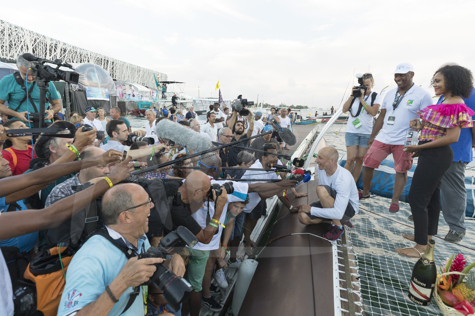 | Description | Category multi 50, media for winner Reaute Chocolat, skipper Armel Tripon, third overall, during arrival of the Route du Rhum 2018, on November 15th, 2018 in Pointe-a-Pitre, Guadeloupe, France - Photo Jean-Marie Liot / Alea. |