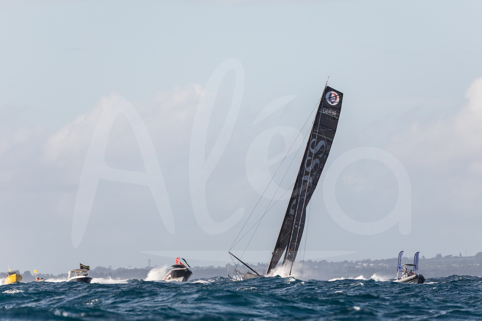 | Description | Hugo Boss, skipper Alex Thomson, 1st arrived but had a 24 hours penalty for having used his engine after he grounded on rocks in North Guadeloupe, took 3rd place after penalty, during arrival of the Route du Rhum 2018, on November 16th, 2018 in Pointe-a-Pitre, Guadeloupe, France - Photo Jean-Marie Liot / Alea |