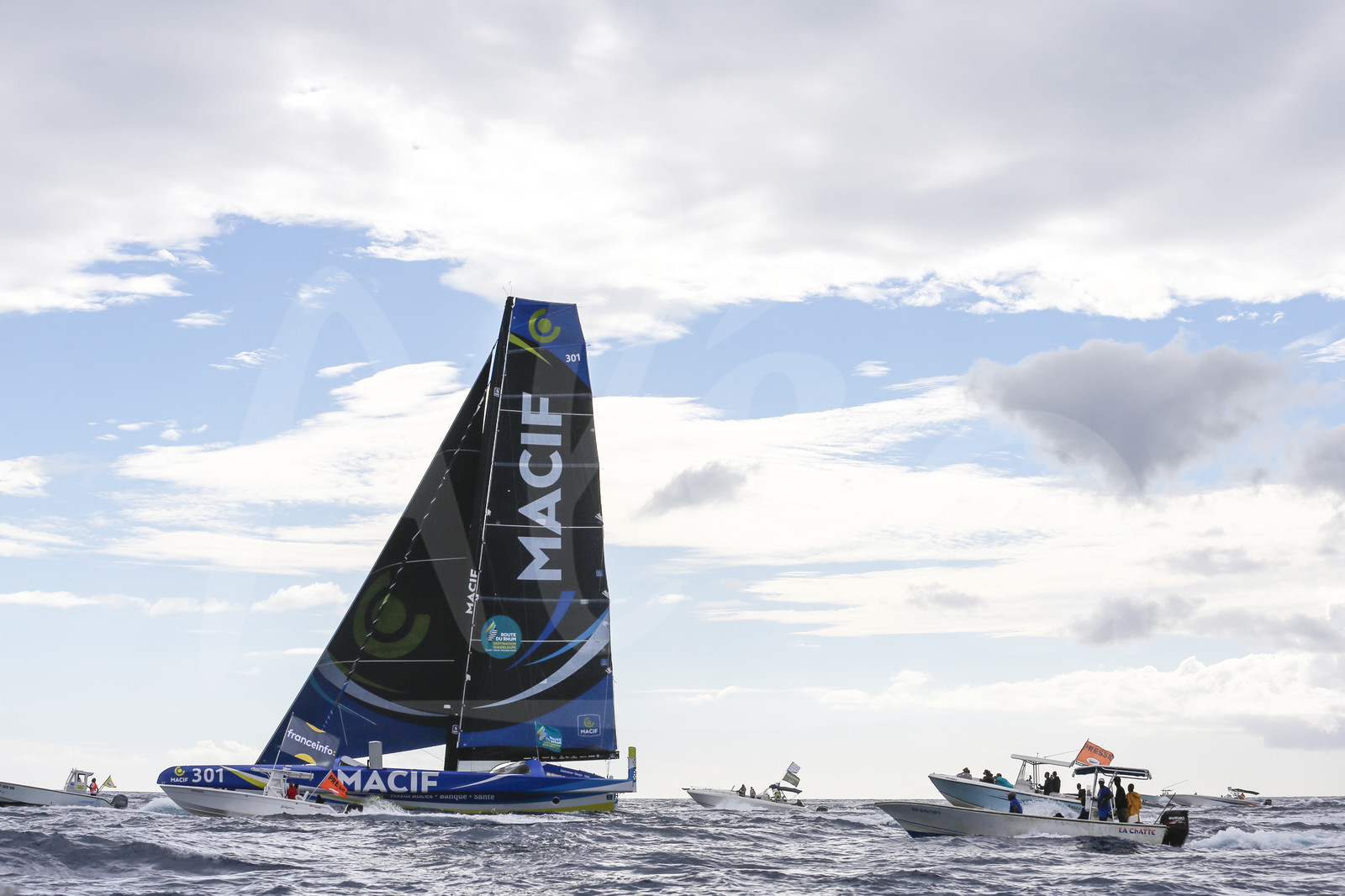 | Description | First images before finish for maxi trimaran MACIF, skipper Francois Gabart, 1st place during arrival of the Route du Rhum 2018, on November 11th, 2018 in Pointe-a-Pitre, Guadeloupe, France - Photo Jean-Marie Liot / Alea |
