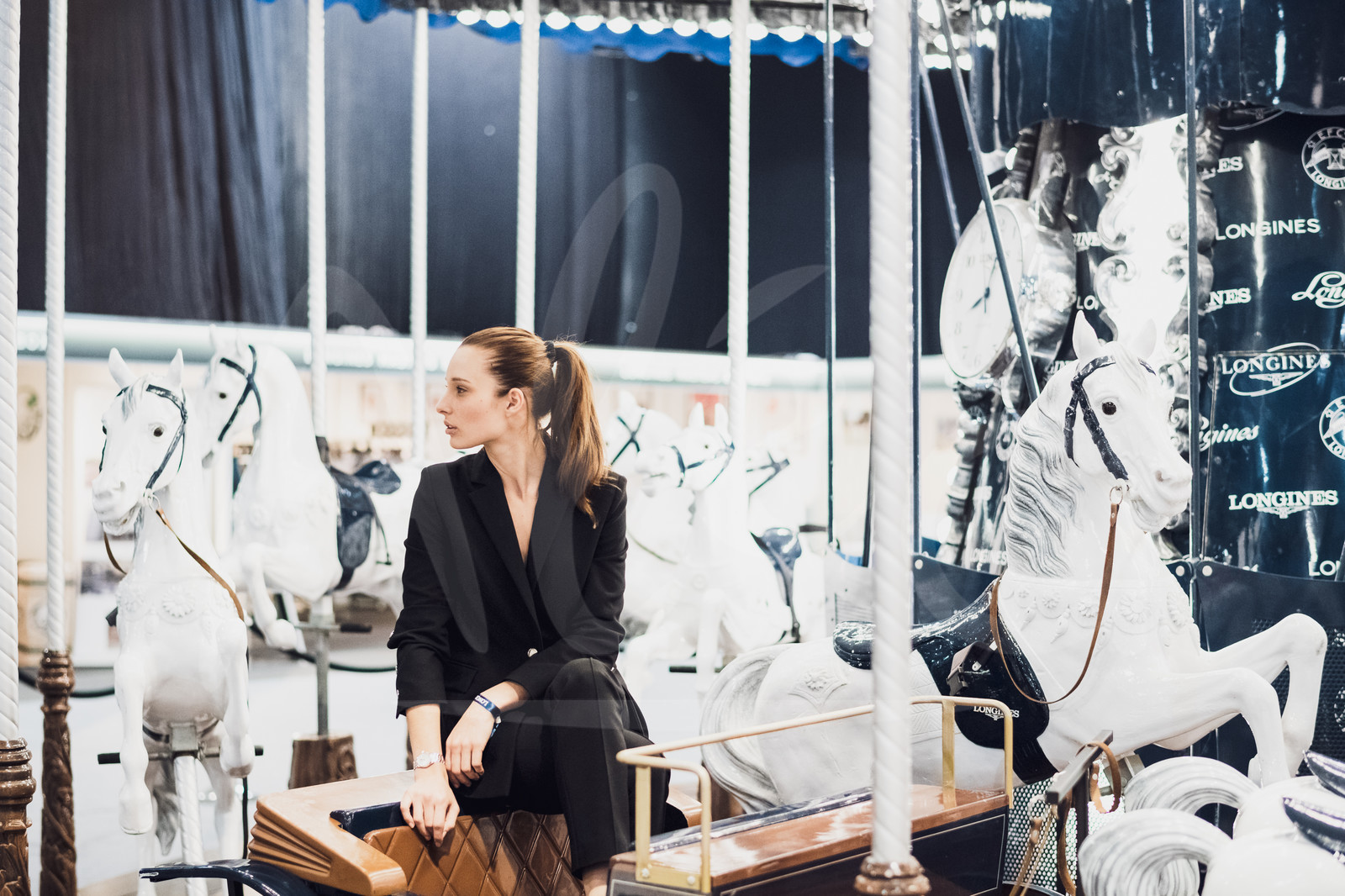 | Description | Longines brand's friend, Ilona Smet, on the carrousel before the CSI5* - LONGINES SPEED CHALLENGE at the Longines Masters Paris 2018, in Villepinte on November 30th, 2018 - Photo Jean-Louis Carli / Alea / EEM |