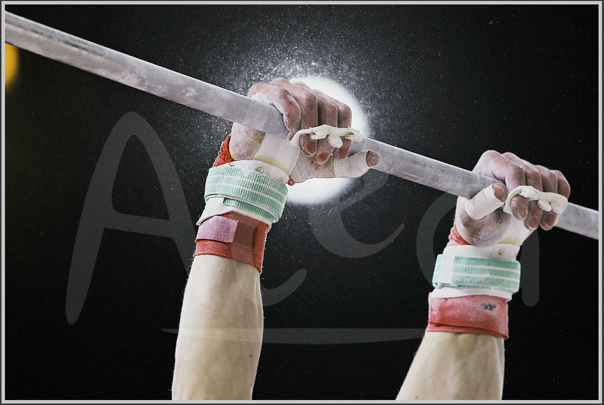 | Description | Illustration barre fixe, maniques et magnésie aux Internationaux de France de Gymnastique - Photo Stéphane Allaman / Alea |
