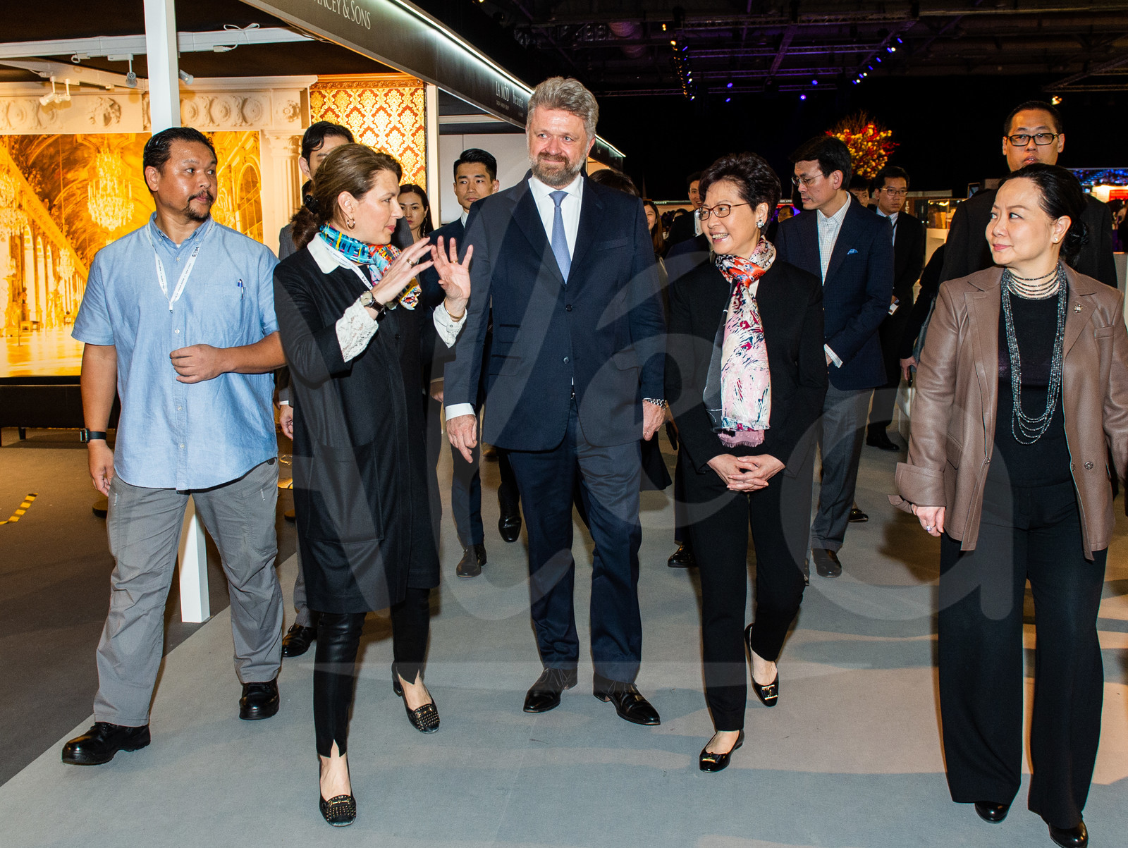 | Description | Carrie LAM, Chief Executive HKSAR, with Christophe Ameeuw (PDG EEM), Anouk Blain-Mailhot (Com Director EEM), Scarlett LEUNG (HKJC), Michael LEE, Pdt HK Equestrian Federation,in the Village Prestige during the Longines Speed Challenge at the Longines Masters Hong Kong 2019, Asia World Expo, on February 17th, 2019 - Photo Jayne Russell / Mazarine / EEM |