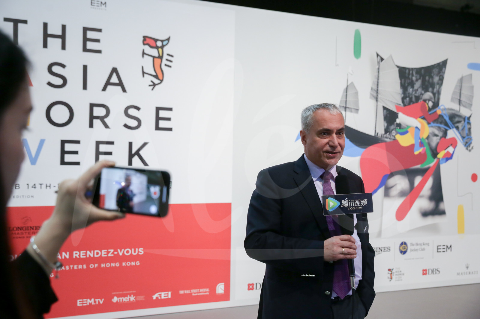 | Description | Ingmar DE VOS, FEI President, interviewed by media during the Asia Horse Week Day 2 at the Longines Masters Hong Kong 2019, at Asia World Expo on February 15th, 2019 - Photo Isaac Lawrence / Mazarine / EEM |