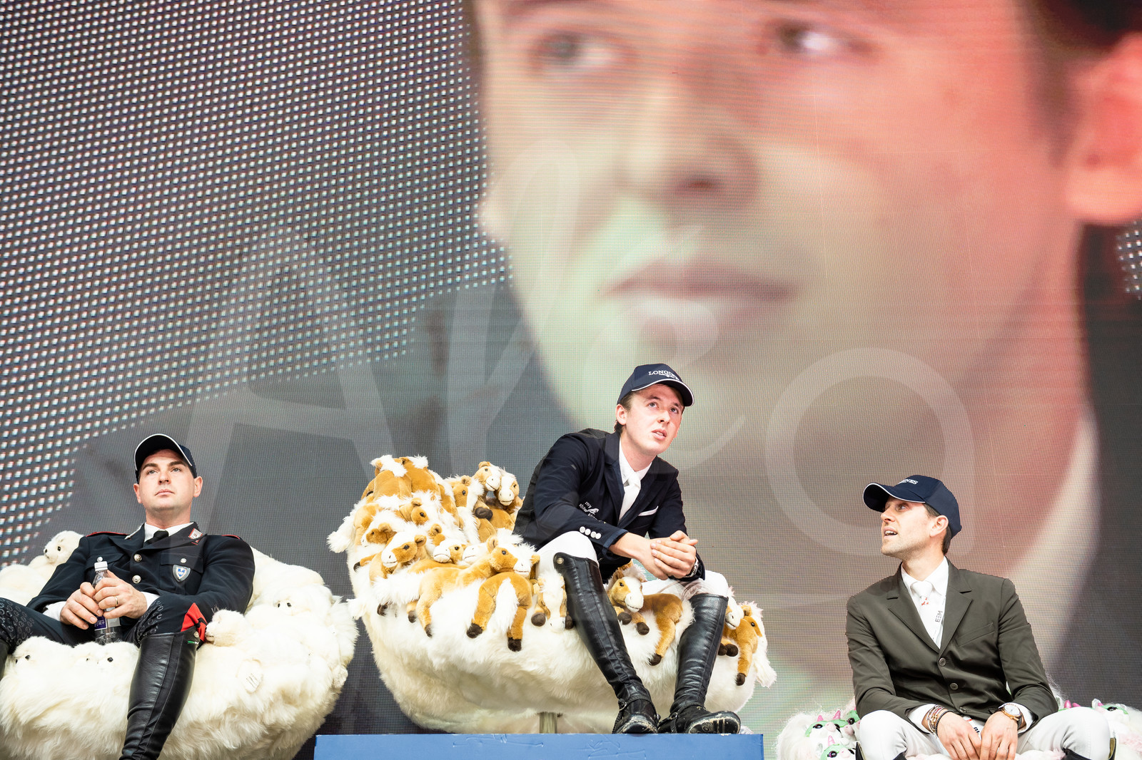 | Description | Provisional podium for GAUDIANO, Emanuele / ITA, ALLEN, Bertram / IRL, DELESTRE, Simon / FRA, during the Longines Speed Challenge, at Longines Masters Hong Kong 2019, Asia World Expo on February 16th, 2019 - Photo Jean-Louis Carli / Alea / EEM |