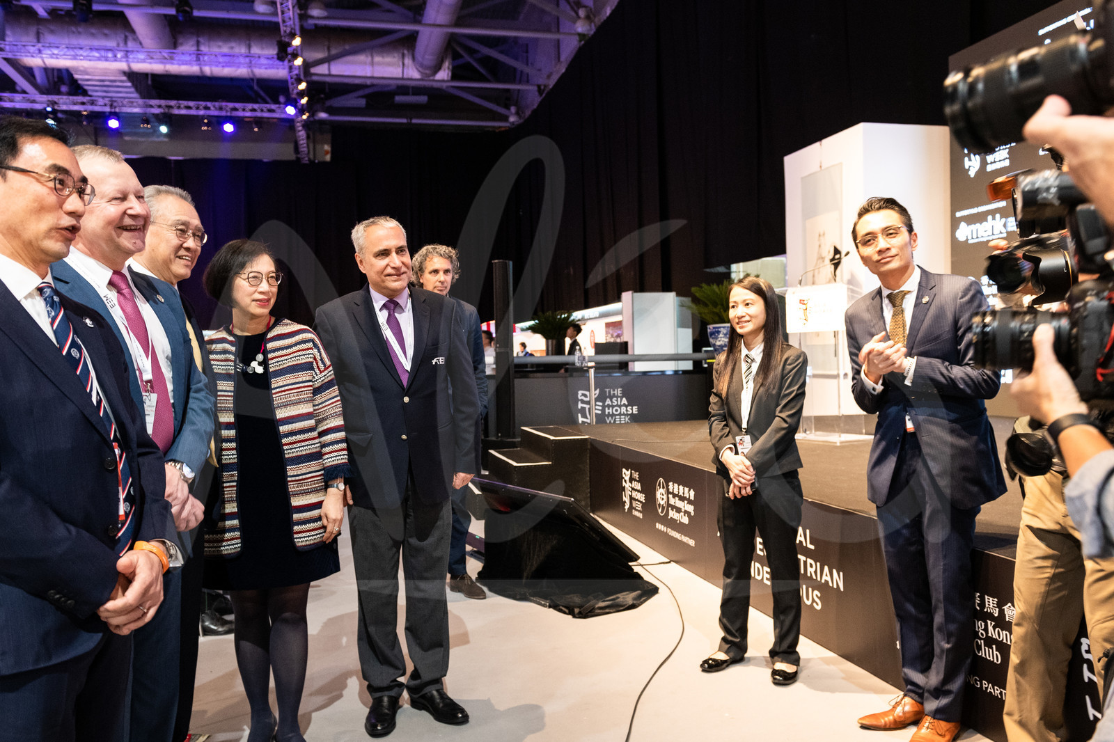 | Description | Michael LEE, Pdt HK Equestrian Federation, Winfried Engelbrecht-Bresges, CEO HKJC, Sophia CHAN, Government official, Ingmar DE VOS, FEI President, during the closing ceremony of the Asia Horse Week at the Longines Masters Hong Kong 2019, at Asia World Expo on February 15th, 2019 - Photo Jean-Louis Carli / Alea / EEM |