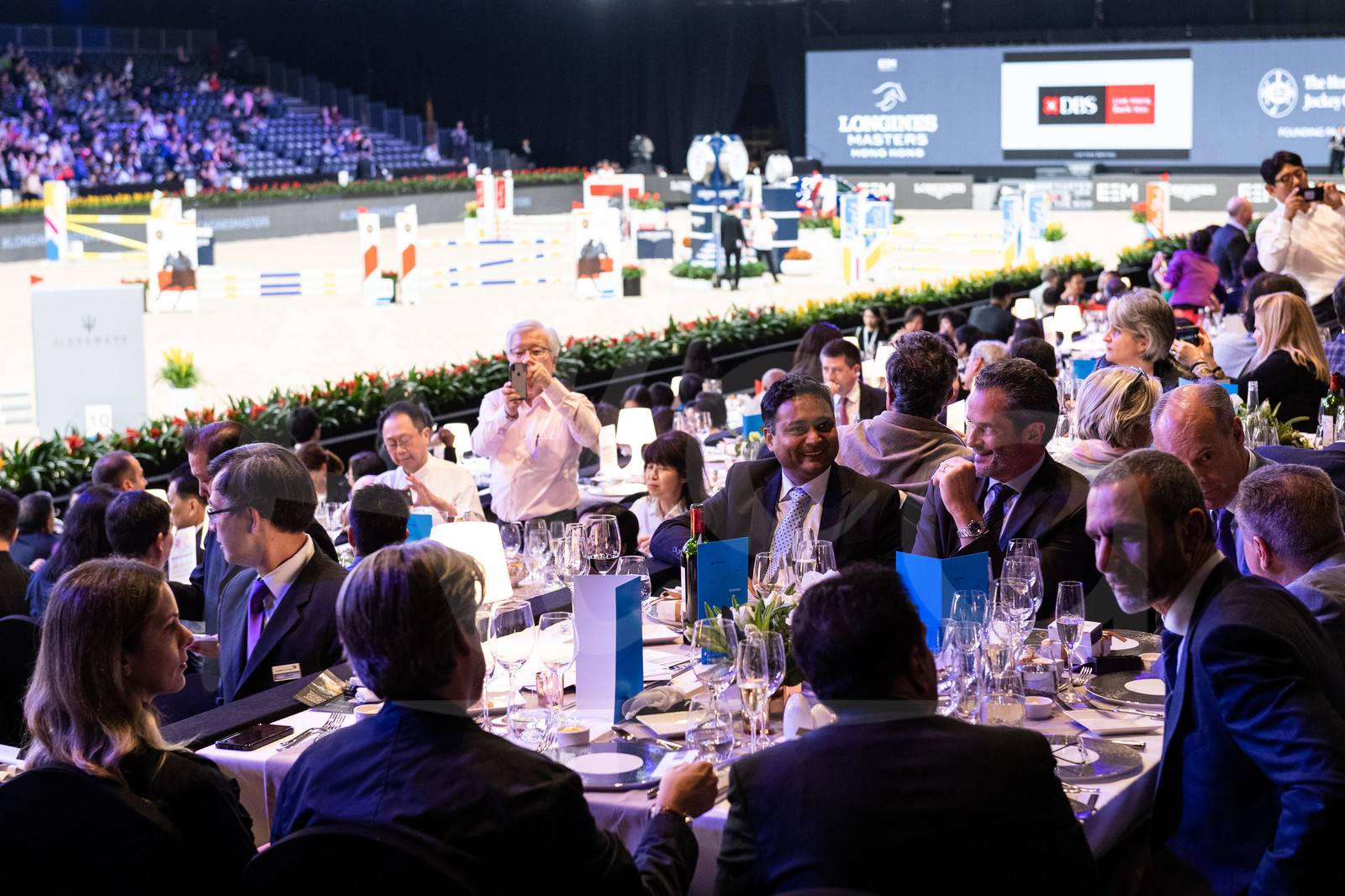 | Description | Tables in the EEM Society VIP area with main arena in the background before DBS Trophy at the Longines Masters Hong Kong 2019, Asia World Expo, on February 15th, 2019 - Photo Jean-Louis Carli /Alea / EEM |