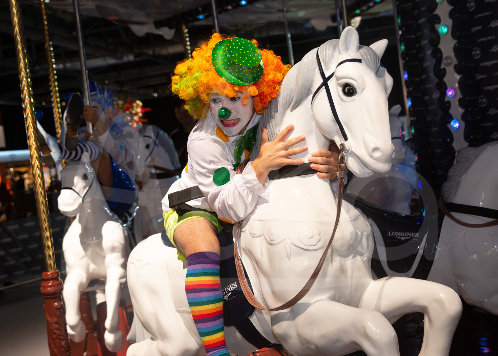 | Description | Clown on the carrousel near the Kid's club of the Longines Masters Hong Kong 2019, at Asia World Expo on February 16th, 2019 - Photo Isaac Lawrence / Mazarine / EEM |