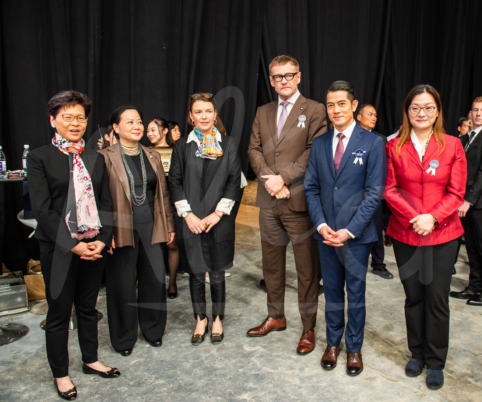 | Description | Carrie LAM, Chief Executive HKSAR, Scarlett LEUNG (HKJC), Anouk Blain-Mailhot (Com Director EEM), Kevin ROLLENHAGEN, country manager, Aaron KWOK, Longines ambassador of Elegance, with Karen Au Yeung, Vice Pdt Longines HKG during the Longines Speed Challenge at the Longines Masters Hong Kong 2019, Asia World Expo, on February 17th, 2019 - Photo Jayne Russell / Mazarine / EEM |