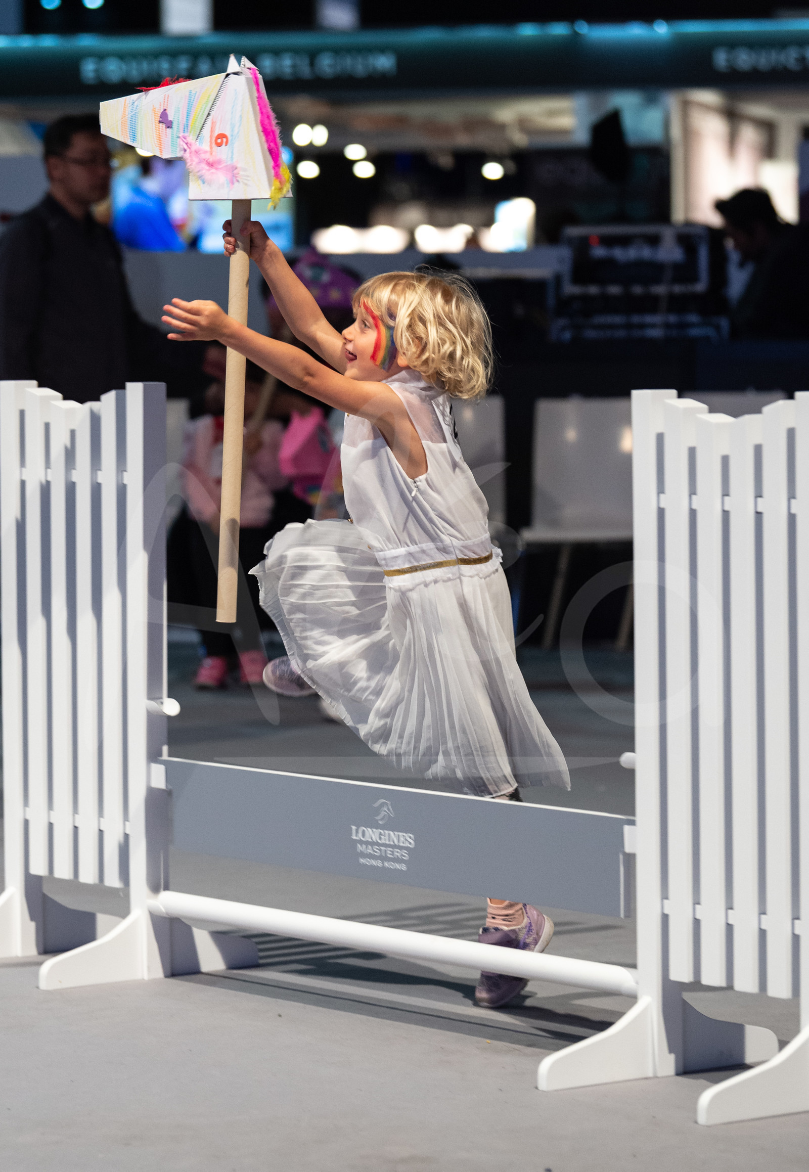 | Description | Little kids below 7 years old during the Hobby Horse kids' race at the Longines Masters Hong Kong 2019, at Asia World Expo on February 16th, 2019 - Photo Isaac Lawrence / Mazarine / EEM |