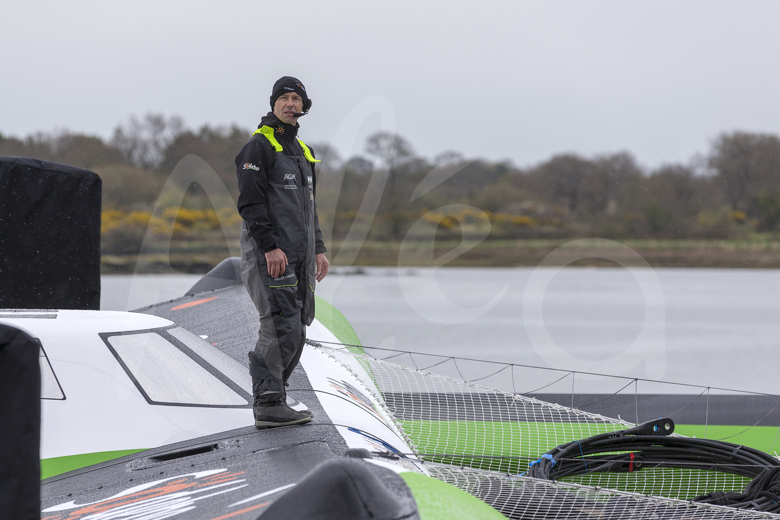 | Description | Launching new Sodebo Ultim 3, skipper Thomas Coville, Multiplast shipyard in Vannes (France), on March 18th, 2019 - Photo Jean-Marie Liot / Alea |