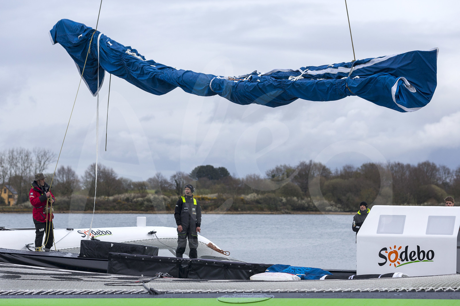 | Description | Launching new Sodebo Ultim 3, skipper Thomas Coville, Multiplast shipyard in Vannes (France), on March 18th, 2019 - Photo Jean-Marie Liot / Alea |
