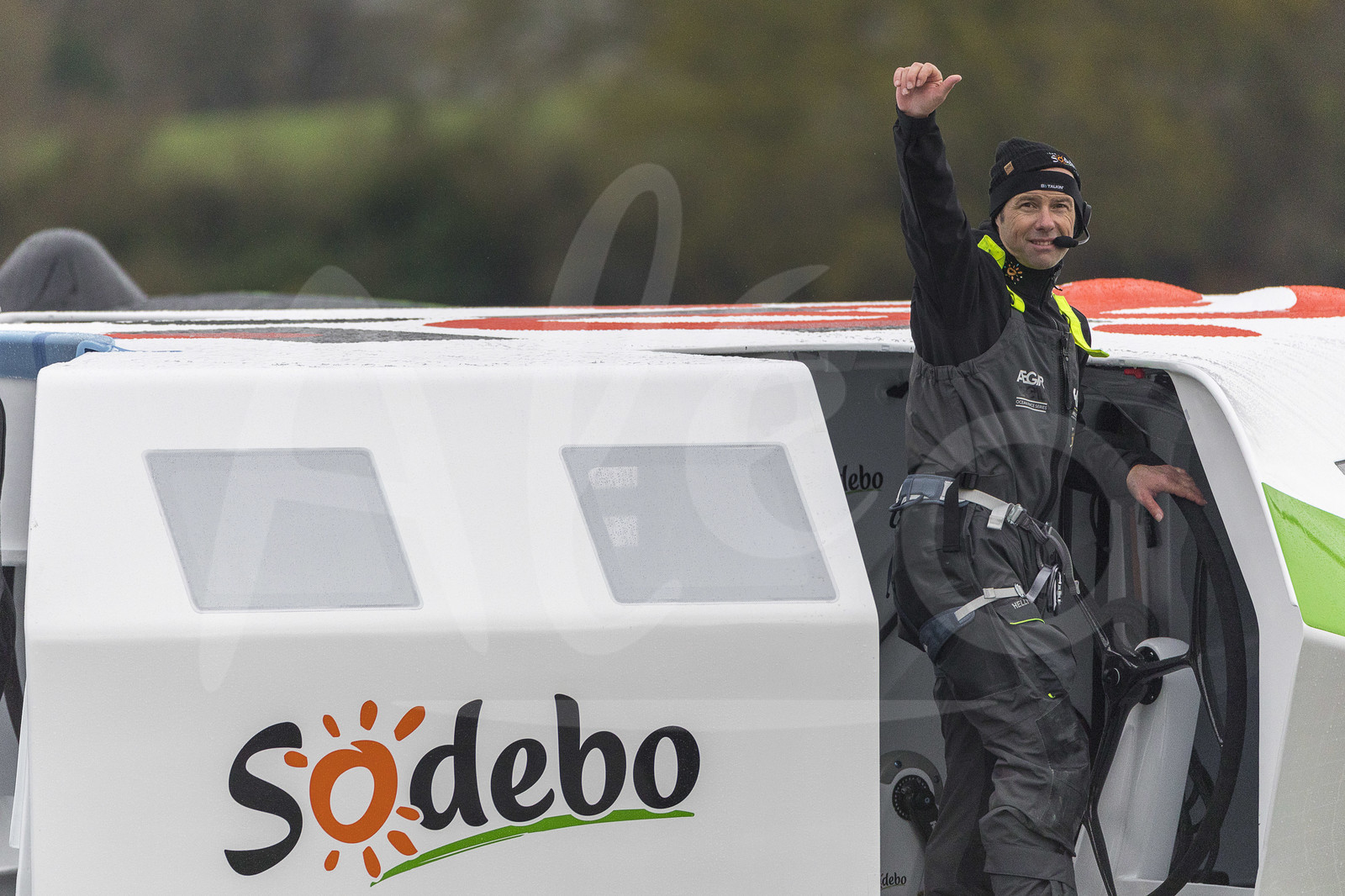 | Description | Launching new Sodebo Ultim 3, skipper Thomas Coville, Multiplast shipyard in Vannes (France), on March 18th, 2019 - Photo Jean-Marie Liot / Alea |