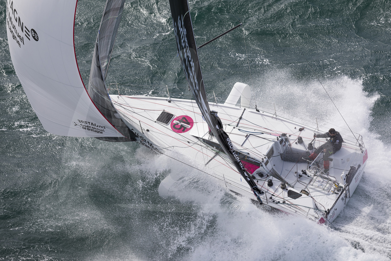 | Description | Figaro 3 Bretagne CMB, skipper Espoir Tom Laperche with skipper Performance Loïs Berrehar, training off les Iles Glenan, on March 10th, 2019 - Photo Jean-Marie Liot / Alea. |