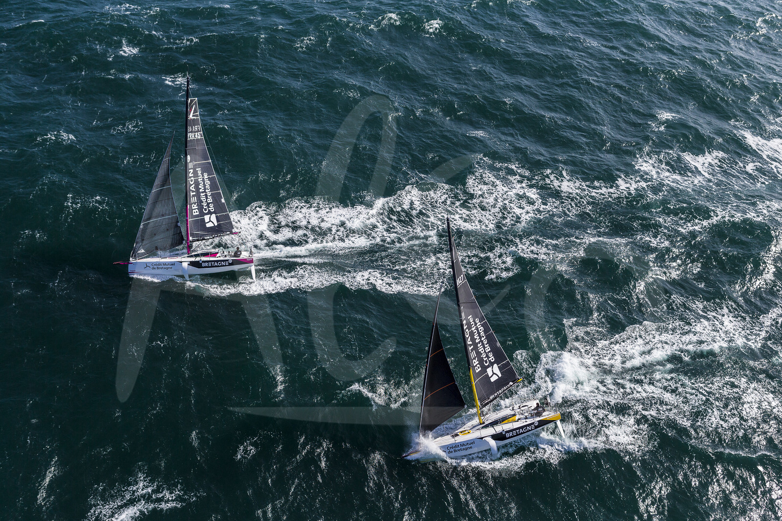 | Description | Figaro 3 Bretagne CMB, skipper Espoir Tom Laperche with skipper Performance Loïs Berrehar, training off les Iles Glenan, on March 10th, 2019 - Photo Jean-Marie Liot / Alea. |