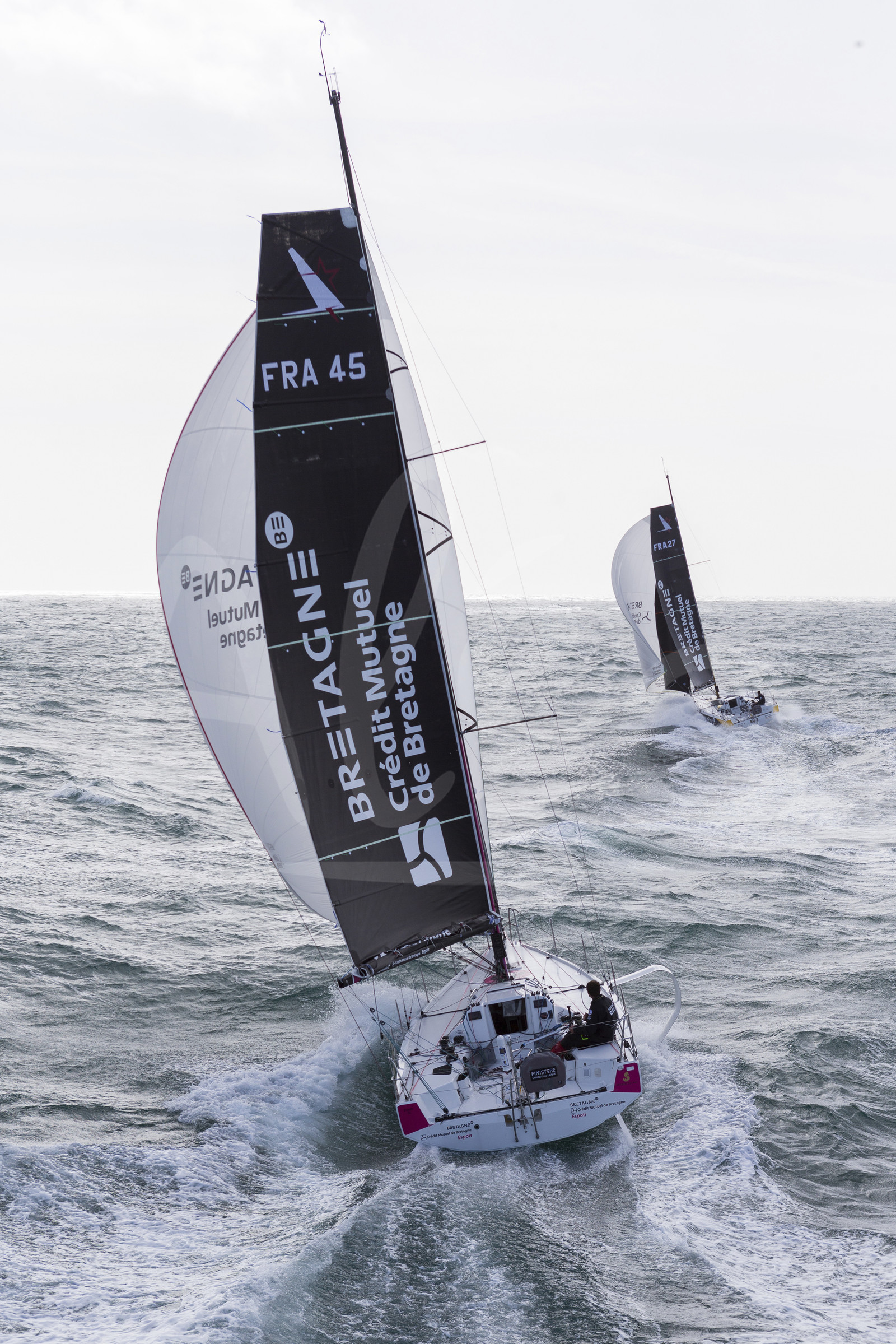 | Description | Figaro 3 Bretagne CMB, skipper Espoir Tom Laperche with skipper Performance Loïs Berrehar, training off les Iles Glenan, on March 10th, 2019 - Photo Jean-Marie Liot / Alea. |