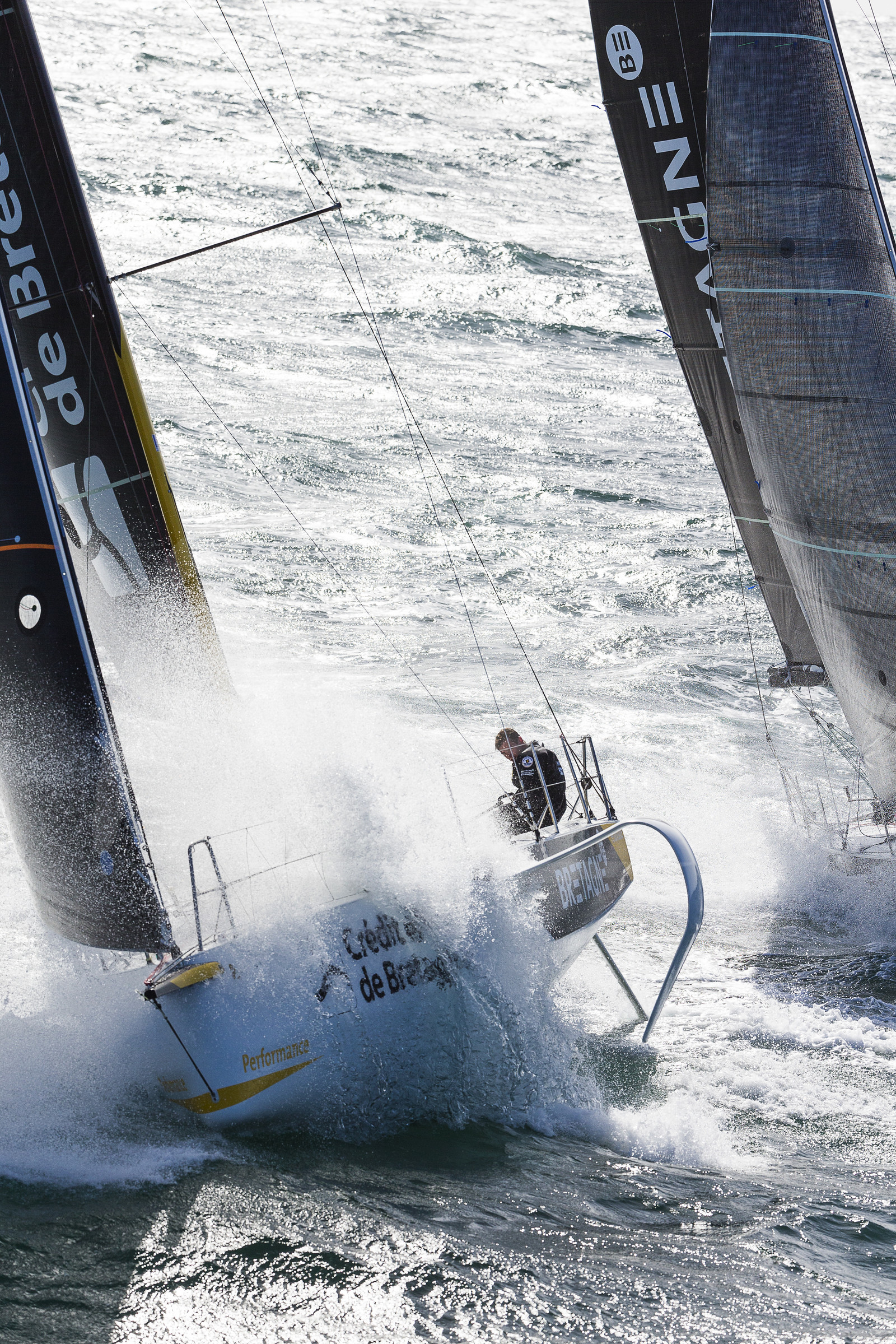 | Description | Figaro 3 Bretagne CMB, skipper Espoir Tom Laperche with skipper Performance Loïs Berrehar, training off les Iles Glenan, on March 10th, 2019 - Photo Jean-Marie Liot / Alea. |