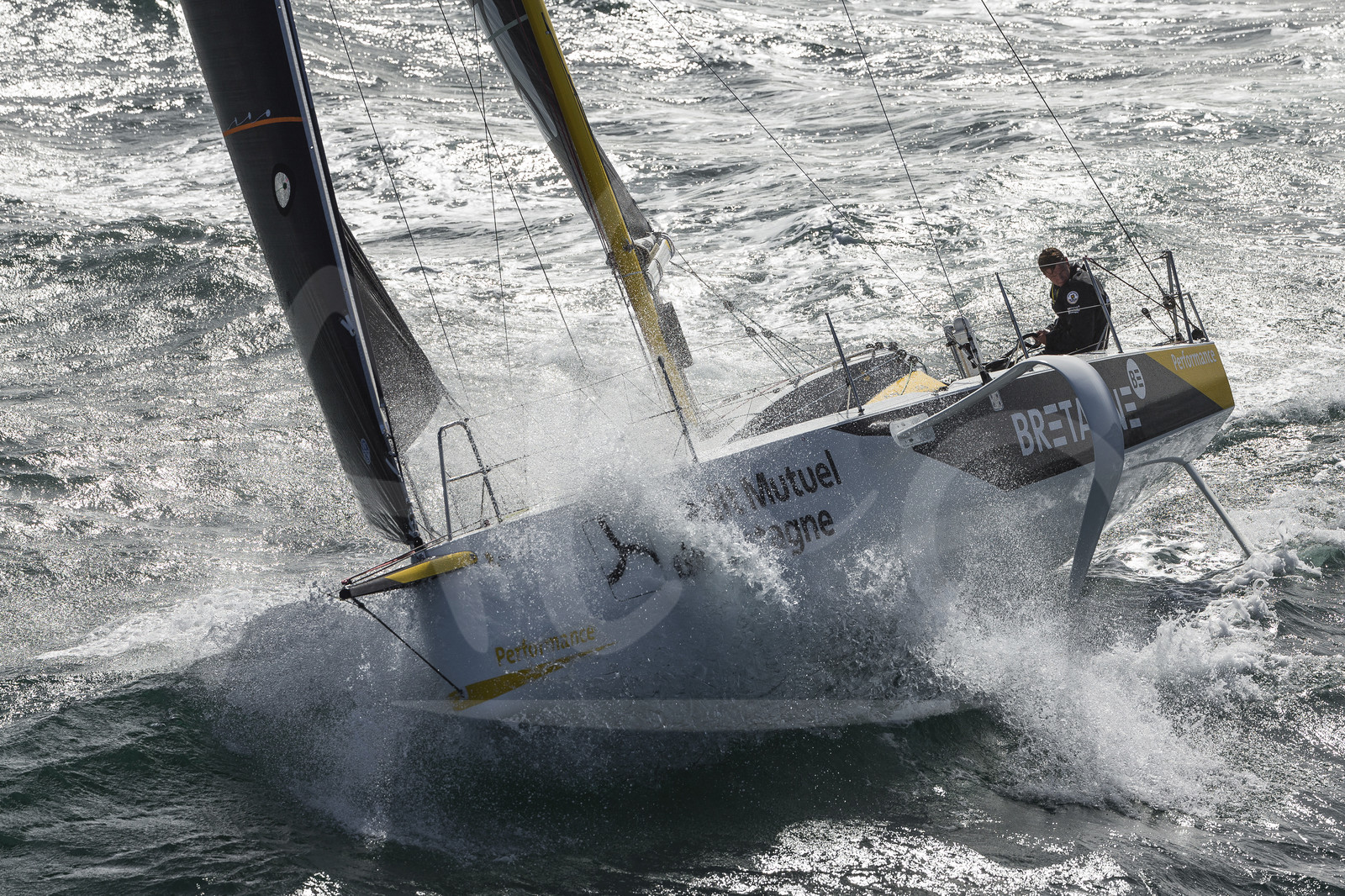 | Description | Figaro 3 Bretagne CMB, skipper Espoir Tom Laperche with skipper Performance Loïs Berrehar, training off les Iles Glenan, on March 10th, 2019 - Photo Jean-Marie Liot / Alea. |