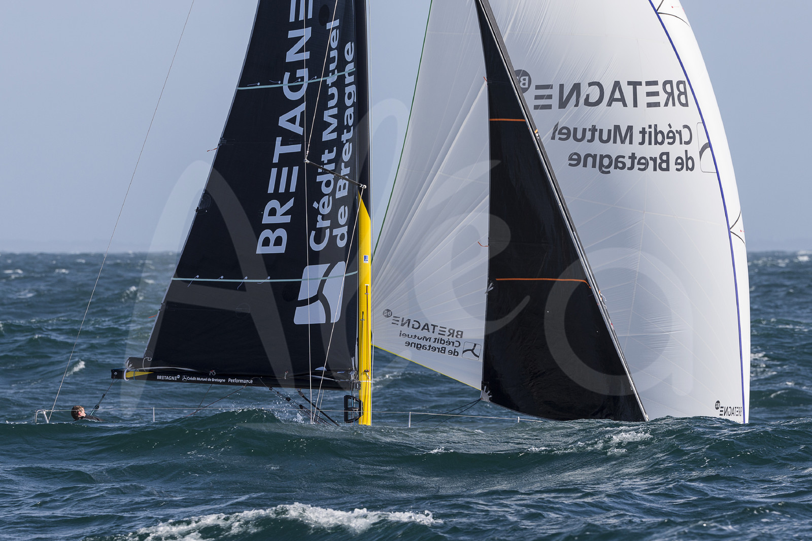 | Description | Figaro 3 Bretagne CMB, skipper Espoir Tom Laperche with skipper Performance Loïs Berrehar, training off les Iles Glenan, on March 10th, 2019 - Photo Jean-Marie Liot / Alea. |