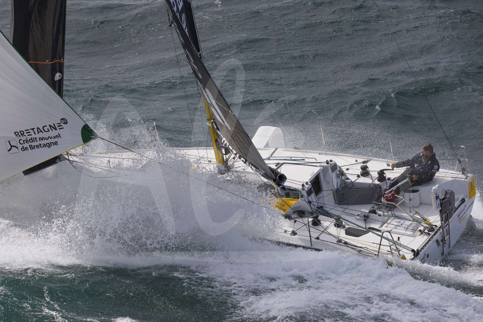 | Description | Figaro 3 Bretagne CMB, skipper Espoir Tom Laperche with skipper Performance Loïs Berrehar, training off les Iles Glenan, on March 10th, 2019 - Photo Jean-Marie Liot / Alea. |