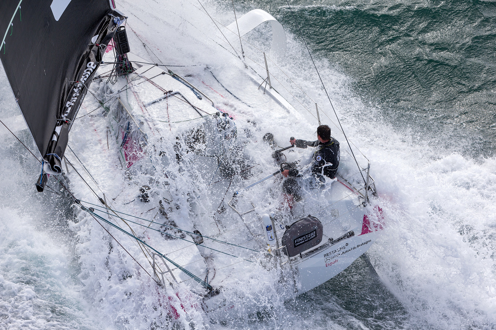 | Description | Figaro 3 Bretagne CMB, skipper Espoir Tom Laperche with skipper Performance Loïs Berrehar, training off les Iles Glenan, on March 10th, 2019 - Photo Jean-Marie Liot / Alea. |