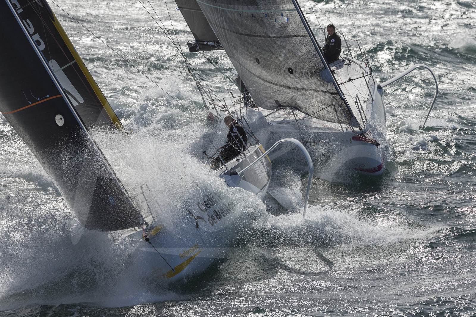| Description | Figaro 3 Bretagne CMB, skipper Espoir Tom Laperche with skipper Performance Loïs Berrehar, training off les Iles Glenan, on March 10th, 2019 - Photo Jean-Marie Liot / Alea. |