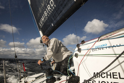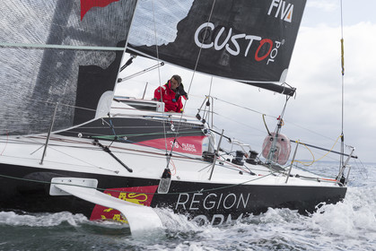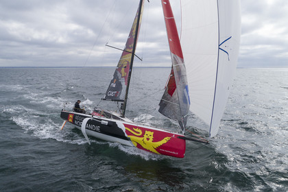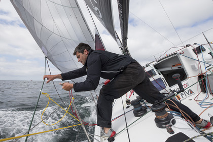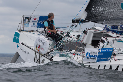 Retrouvez les premières images d'entrainement des Figaro 3 de Michel Desjoyeaux sur Lumibird au large de Port La Foret, Benoit Hochart sur Team Benoit Hochart et Alexis Loison sur Region Normandie dans la baie de Quiberon.