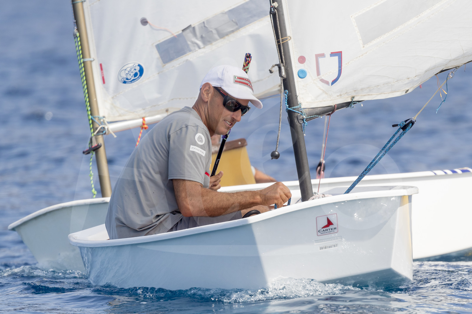 | Description | MONDELLO, PALERMO, ITALY - JUNE 20: James Spithill is having fun sailing on Optimist boat against each other during the Luna Rossa team presentation for the America's Cup 2021, on June 20, 2019 in Mondello, Palermo, Italy. (Photo by Studio Borlenghi/ALeA).. |