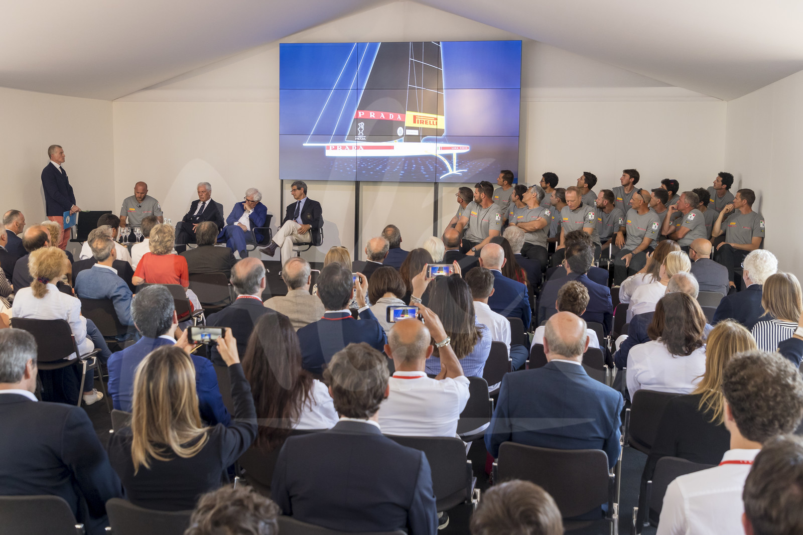 | Description | MONDELLO, PALERMO, ITALY - JUNE 20: Media and guests are watching the Luna Rossa team presentation for the America's Cup 2021, on June 20, 2019 in Mondello, Palermo, Italy. (Photo by Studio Borlenghi/ALeA).. |