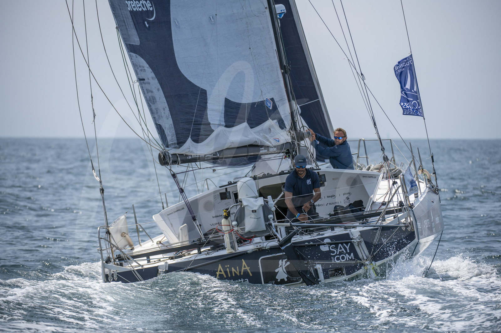 | Description | LES SABLES D'OLONNE - JUNE 30, 2019 : French skippers Aymeric Chappellier and Rodrigue Cabbaz, on Aïna Enfance & Avenir, takes the start of the Class 40 sailing race in duo, Les Sables - Horta - Les Sables on June 30, 2019, off Les Sables d'Olonne, France. (Photo by Olivier Blanchet/Alea) |