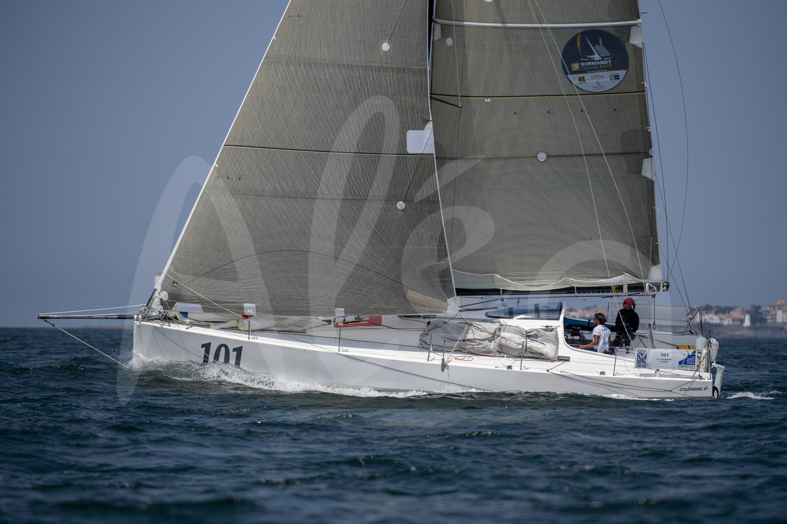 | Description | LES SABLES D'OLONNE - JUNE 30, 2019 : French skippers Charles Louis Mourruau and Estelle Greck, on Colombre XL, takes the start of the Class 40 sailing race in duo, Les Sables - Horta - Les Sables on June 30, 2019, off Les Sables d'Olonne, France. (Photo by Olivier Blanchet/Alea) |