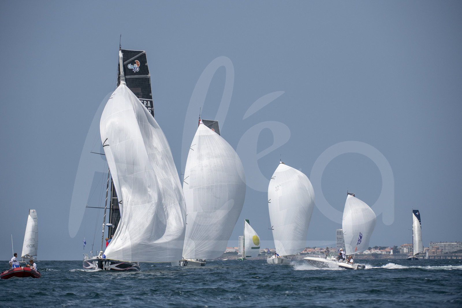 | Description | LES SABLES D'OLONNE - JUNE 30, 2019 : The fleet takes the start of the Class 40 sailing race in duo, Les Sables - Horta - Les Sables on June 30, 2019, off Les Sables d'Olonne, France. (Photo by Olivier Blanchet/Alea) |
