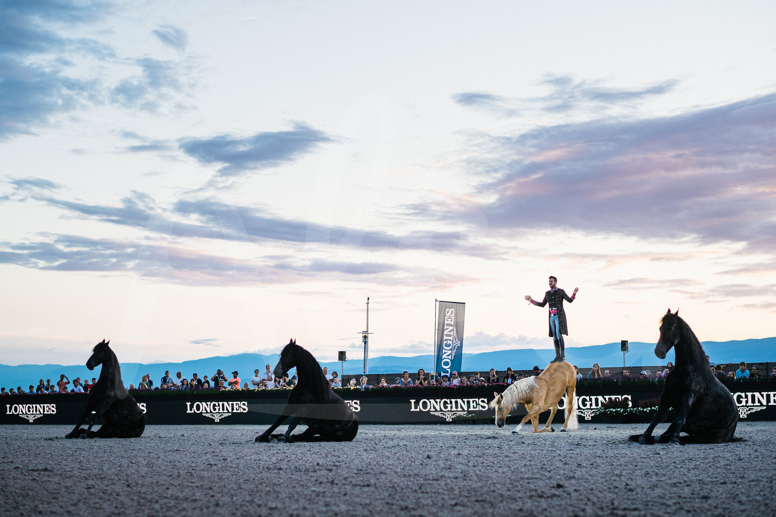 | Description | LAUSANNE, SWITZERLAND - JUNE 22, 2019 : Equestrian artist Santi Serra performs a show with dogs and horses at the Longines Masters Lausanne, on June 22, 2019 in Lausanne, Switzerland. (Photo by Jean-Louis Carli/ALeA/EEM) |