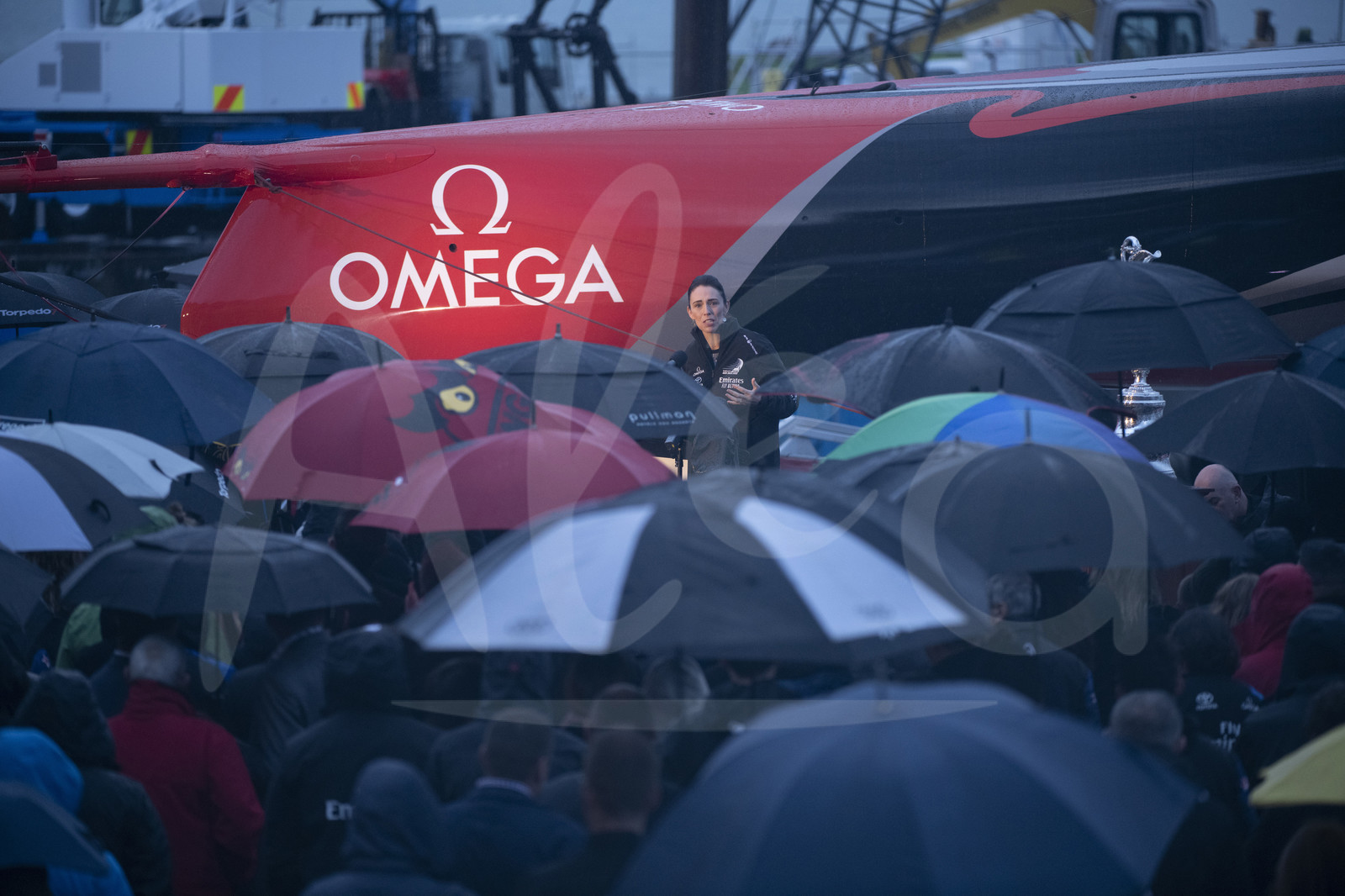 | Description | AUCKLAND, NEW ZEALAND - SEPTEMBER 06: New Zealand Prime Minister Jacinda Ardern talks to Team and guests, at the christening of the new ETNZ boat named Te Aihe, on September 06, 2019 in Auckland, New Zealand. It was the first AC75 launched by any of the five teams that will be involved in the 2021 Americas Cup in Auckland. (Photo by Chris Cameron/Alea) |