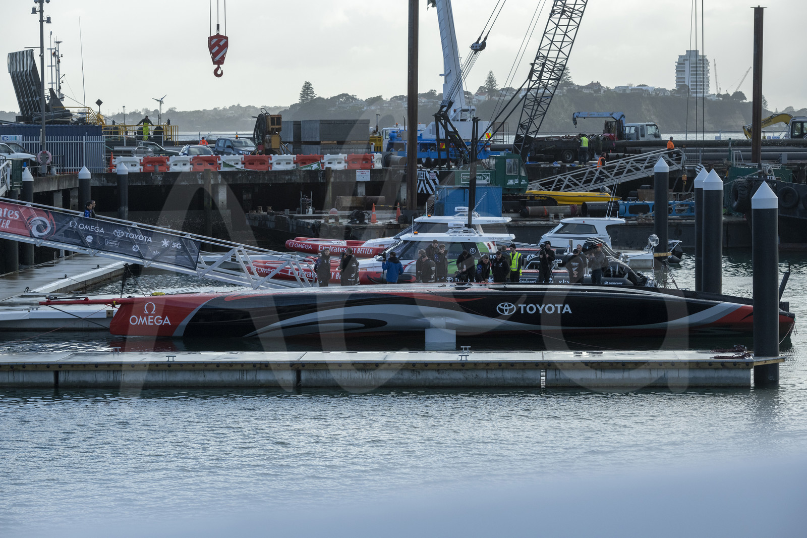 | Description | AUCKLAND, NEW ZEALAND - SEPTEMBER 06: New ETNZ boat named Te Aihe, has been lifted onto water during her christening, on September 06, 2019 in Auckland, New Zealand. It was the first AC75 launched by any of the five teams that will be involved in the 2021 Americas Cup in Auckland. (Photo by Chris Cameron/Alea) |