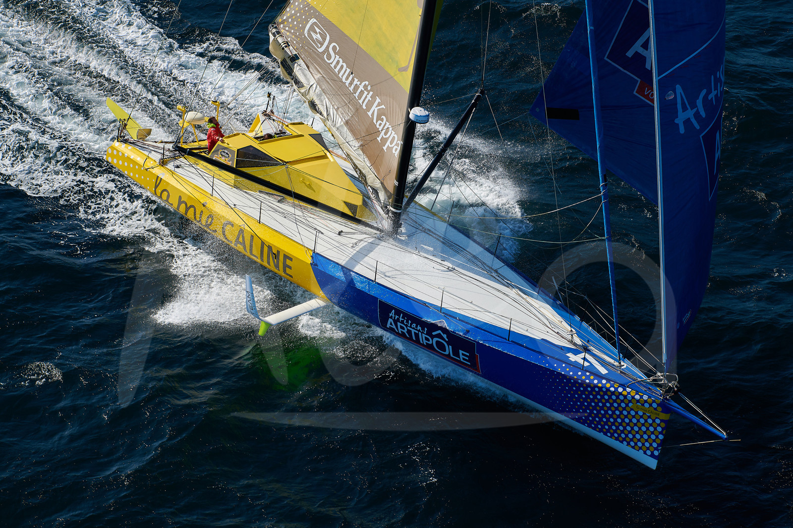 | Description | OFF LORIENT, FRANCE - SEPTEMBER 19: French skippers Arnaud Boissieres and Xavier Macaire are training on the Imoca La Mie Caline - Artipole, prior to the Transat Jacques Vabre, sailing race in duo from Le Havre to Bahia, on September 19, 2019 off Lorient, France. (Photo by Yvan Zedda/Alea) |