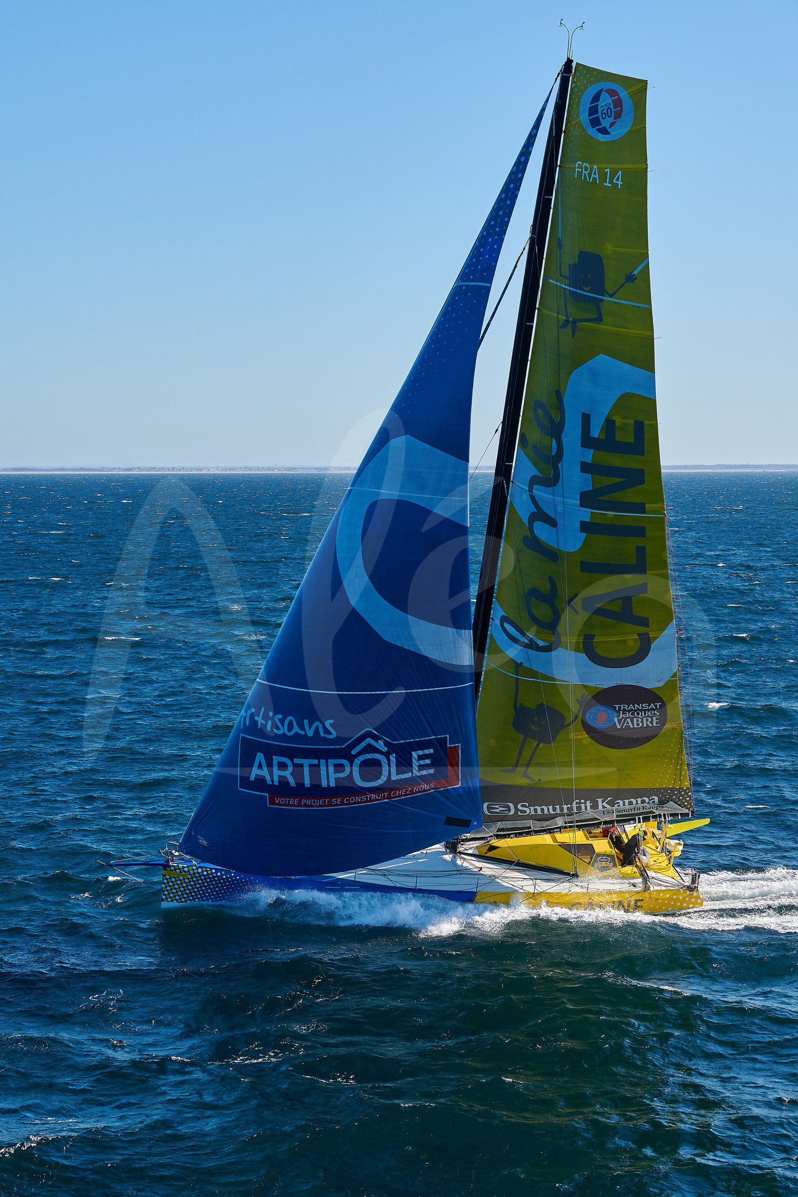 | Description | OFF LORIENT, FRANCE - SEPTEMBER 19: French skippers Arnaud Boissieres and Xavier Macaire are training on the Imoca La Mie Caline - Artipole, prior to the Transat Jacques Vabre, sailing race in duo from Le Havre to Bahia, on September 19, 2019 off Lorient, France. (Photo by Yvan Zedda/Alea) |