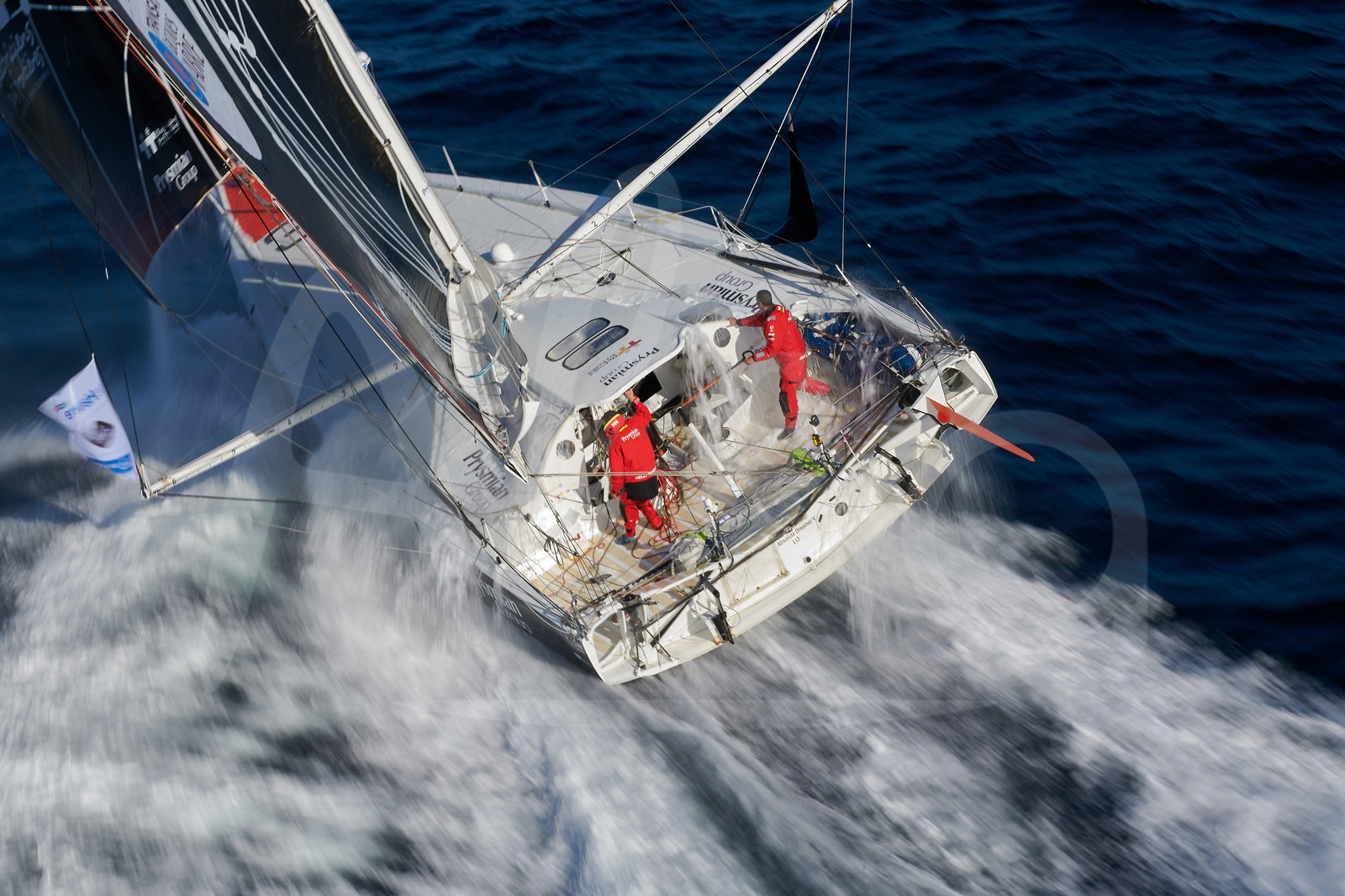| Description | OFF LORIENT, FRANCE - SEPTEMBER 19: Italian skipper Giancarlo Pedote and French Anthony Marchand are training on the Imoca Prysmian Group, prior to the Transat Jacques Vabre, sailing race in duo from Le Havre to Bahia, on September 19, 2019, off Lorient, France. (Photo by Yvan Zedda/Alea) |