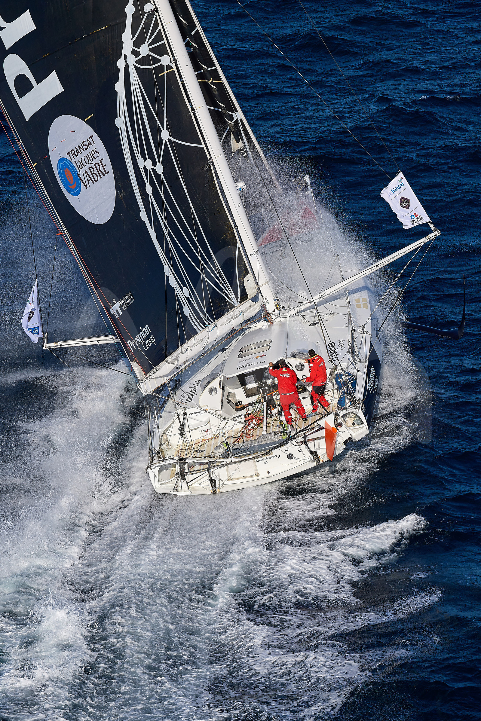 | Description | OFF LORIENT, FRANCE - SEPTEMBER 19: Italian skipper Giancarlo Pedote and French Anthony Marchand are training on the Imoca Prysmian Group, prior to the Transat Jacques Vabre, sailing race in duo from Le Havre to Bahia, on September 19, 2019, off Lorient, France. (Photo by Yvan Zedda/Alea) |