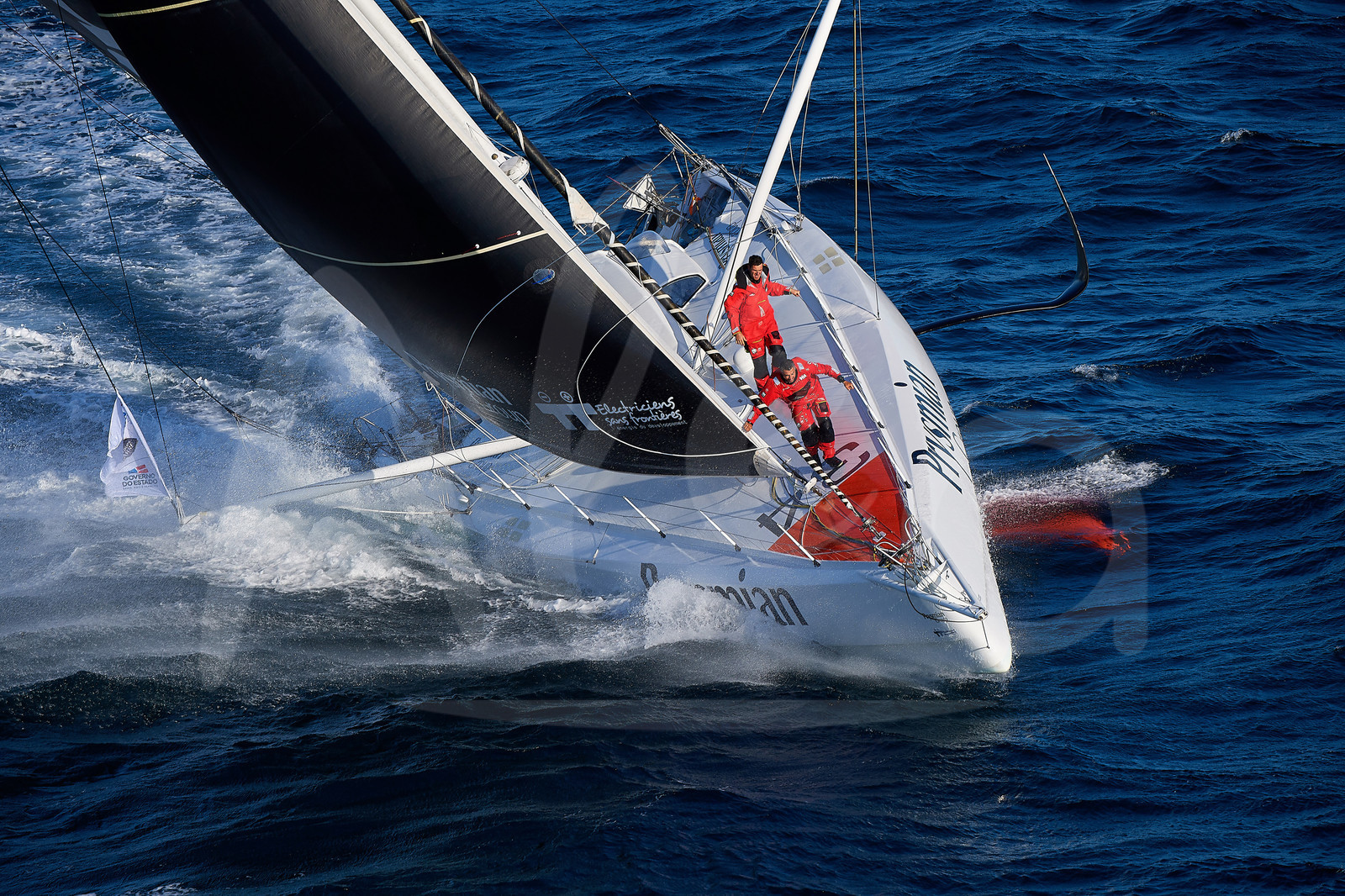 | Description | OFF LORIENT, FRANCE - SEPTEMBER 19: Italian skipper Giancarlo Pedote and French Anthony Marchand are training on the Imoca Prysmian Group, prior to the Transat Jacques Vabre, sailing race in duo from Le Havre to Bahia, on September 19, 2019, off Lorient, France. (Photo by Yvan Zedda/Alea) |