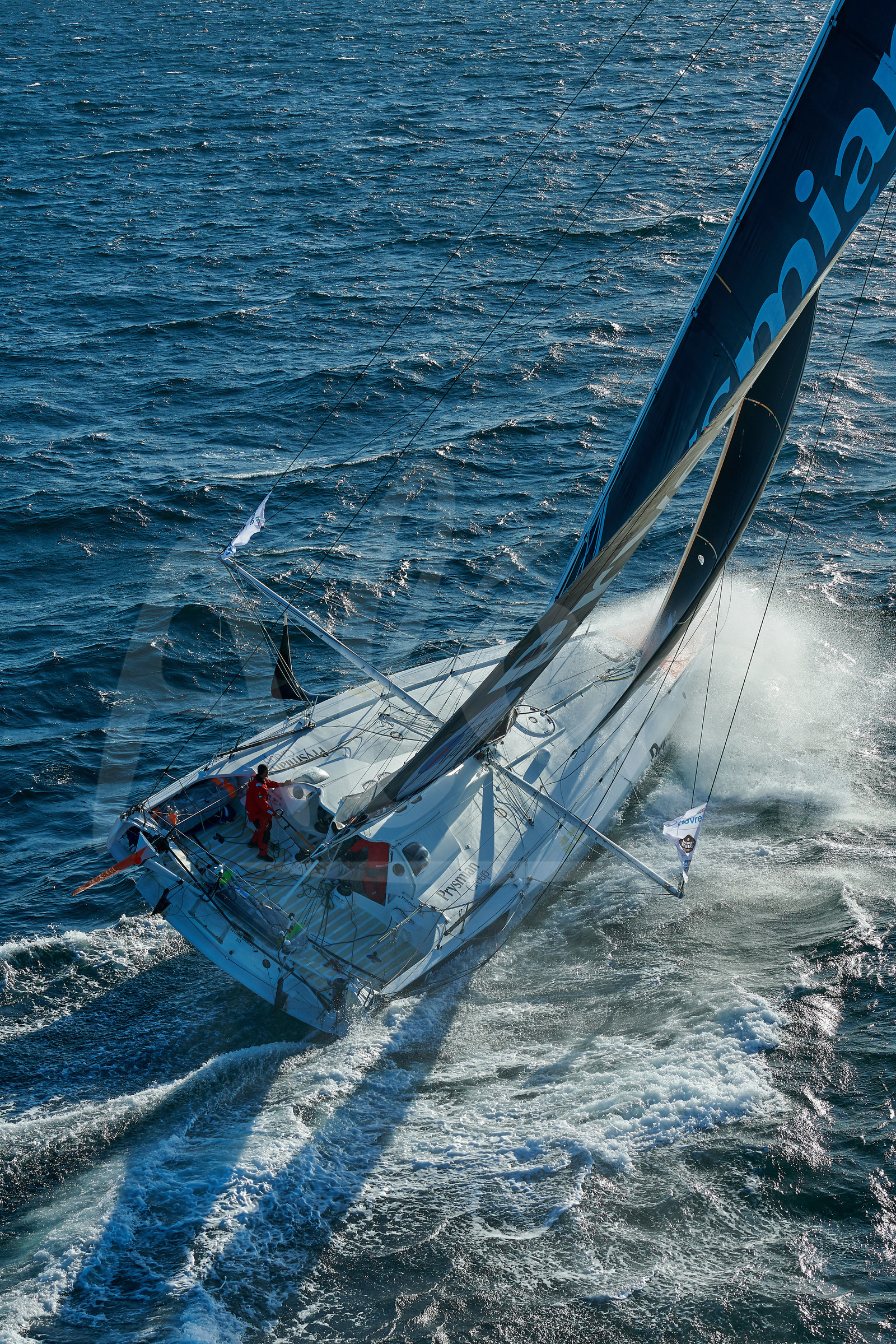 | Description | OFF LORIENT, FRANCE - SEPTEMBER 19: Italian skipper Giancarlo Pedote and French Anthony Marchand are training on the Imoca Prysmian Group, prior to the Transat Jacques Vabre, sailing race in duo from Le Havre to Bahia, on September 19, 2019, off Lorient, France. (Photo by Yvan Zedda/Alea) |